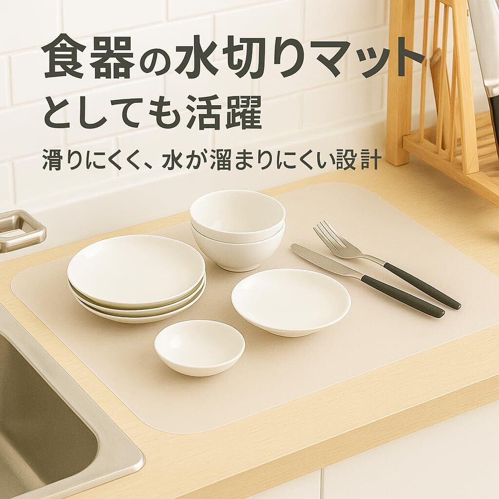 シリコンマット キッチンマット 作業台保護 大判サイズ 滑り止め 防汚 傷防止 水洗いOK 食洗機対応 折りたたみ収納 (ホワイト, 50x70cm)
