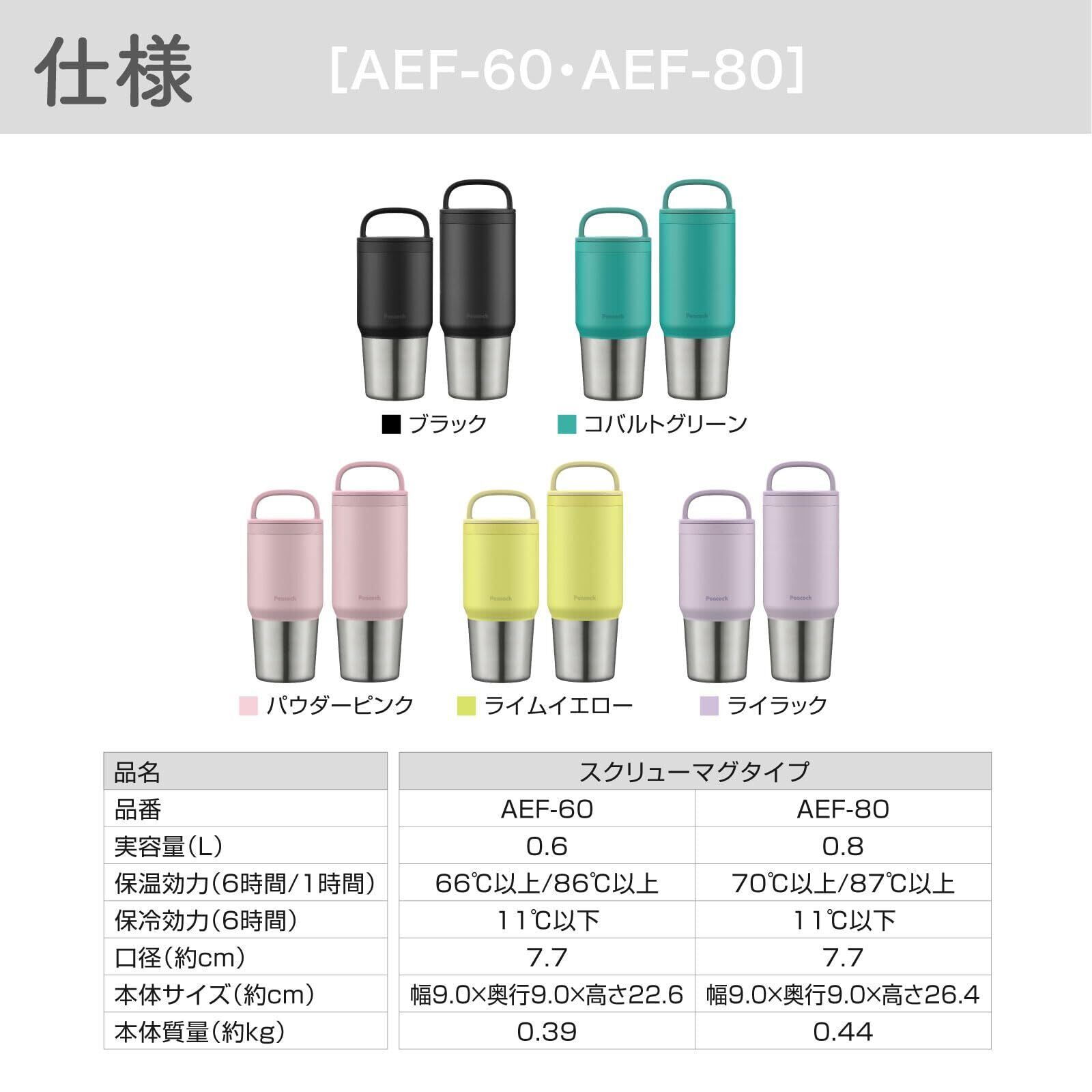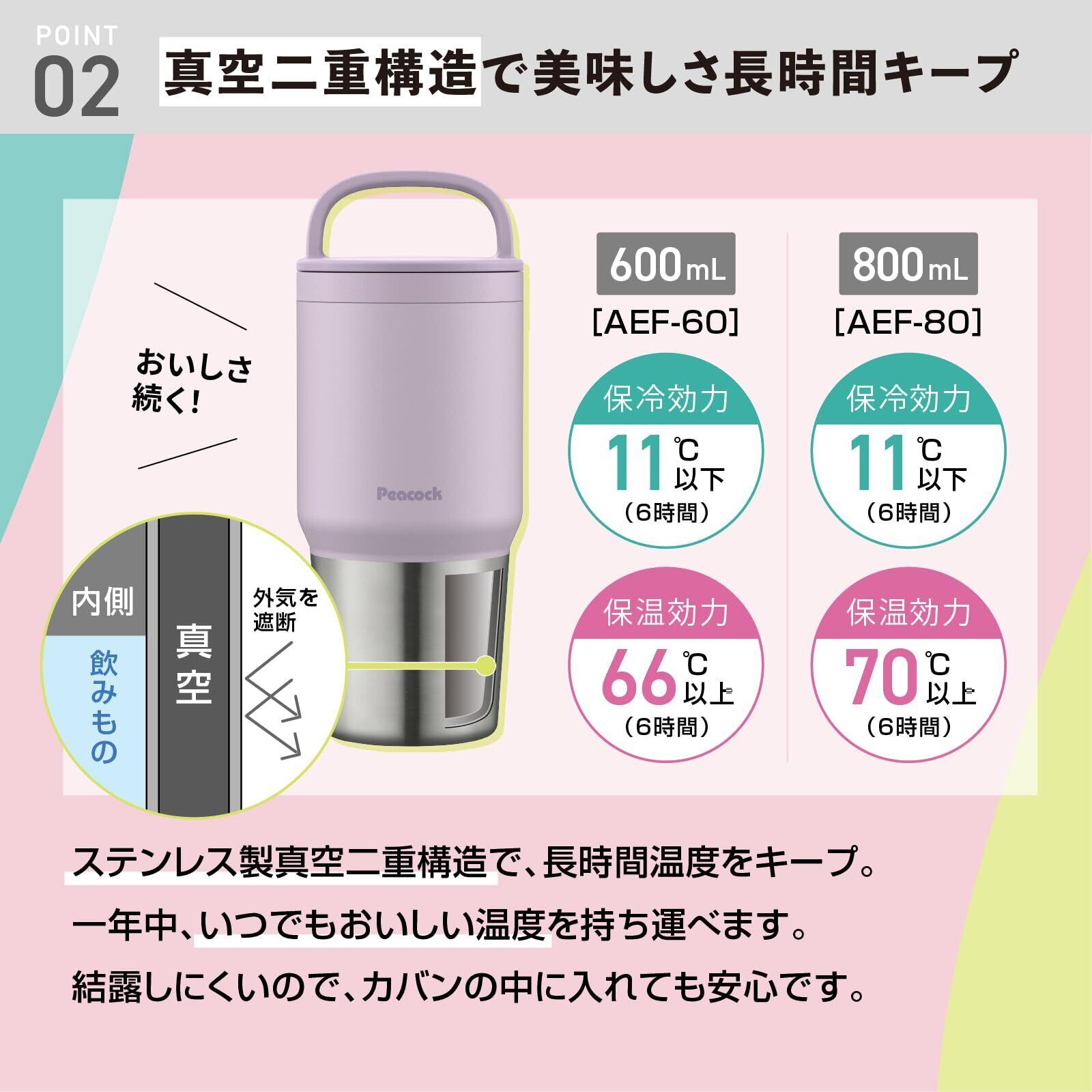 ピーコック魔法瓶工業(The-peacock) ピーコック 水筒 マグボトル 800ml 蓋付き ステンレスボトル 洗いやすい 保温保冷 ライラック AEF-80 AV