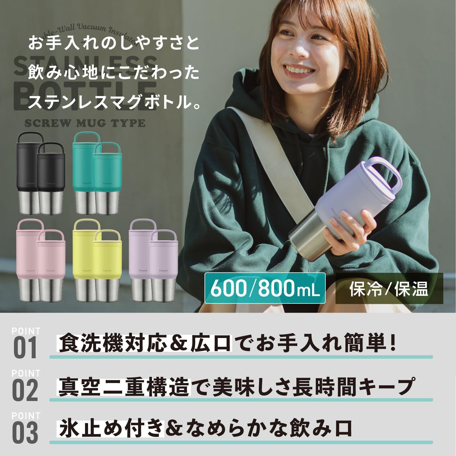 特徴 こぼれ防止, ダブルウォール, 真空断熱, 食洗機対応