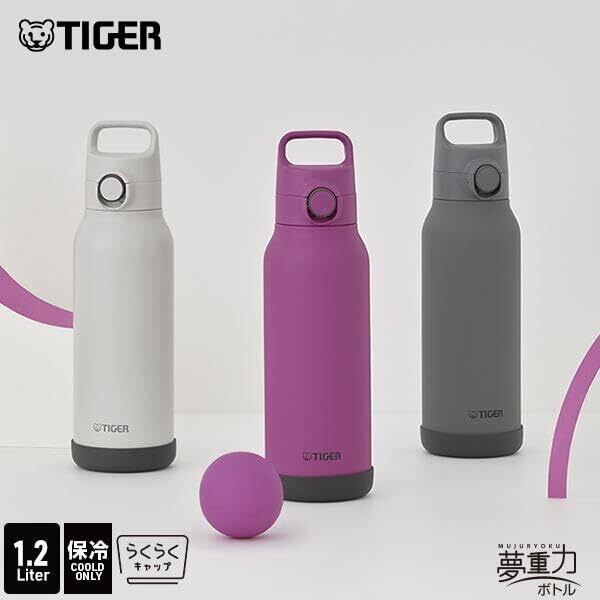 タイガー魔法瓶 水筒 1.2リットル ハンドル付き片手で開けやすいワンタッチ真空断熱ステンレスボトル スポーツドリンクOK 大容量 直飲み 広口 保冷専用 グレー MTA-H120HH