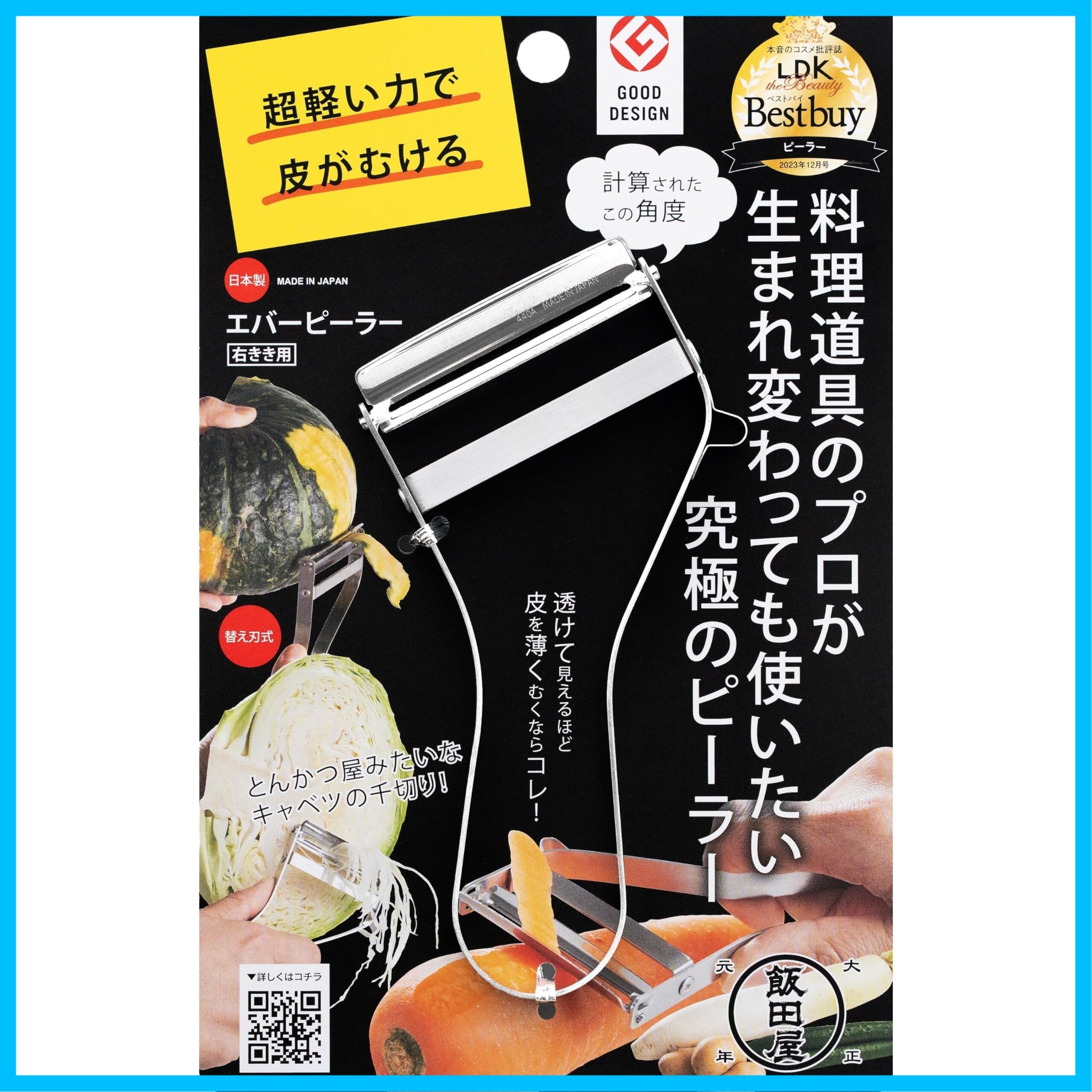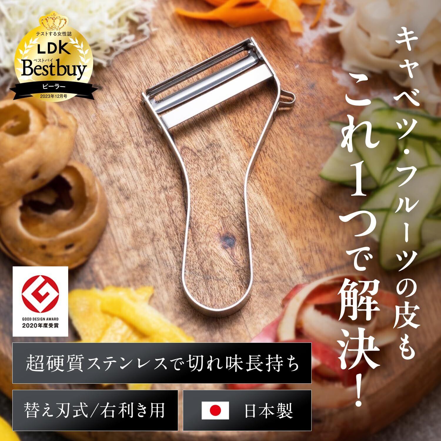 【テレビや雑誌「LDK」にて紹介】浅草かっぱ橋飯田屋が、世界中の200種類以上のピーラーを比べて辿り着いた極上の切れ味を誇る皮むき器「エバーピーラー」。野菜や果物の皮を剥く際も、スムーズに皮をむくことができ、食材の無駄も抑えられます。その使い心地が評価され、LDKベストバイにも選ばれました。