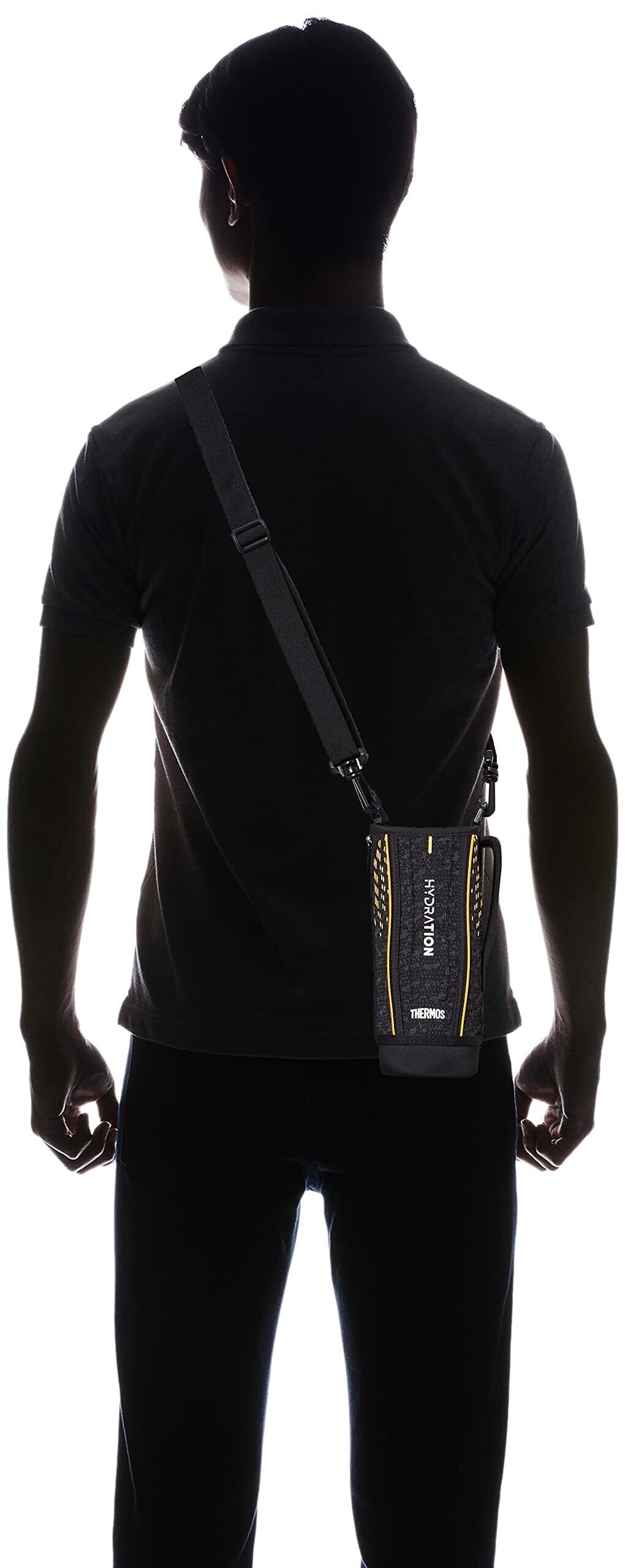サーモス 真空断熱スポーツボトル FHTシリーズ専用のハンディポーチ (ブラックオレンジ)