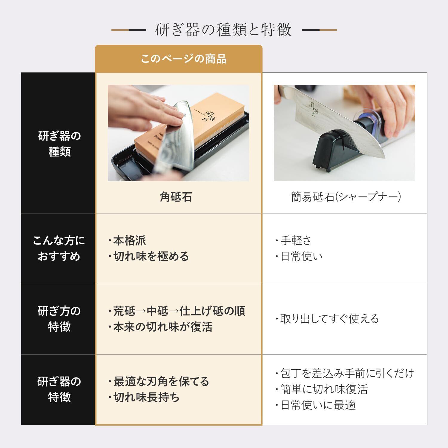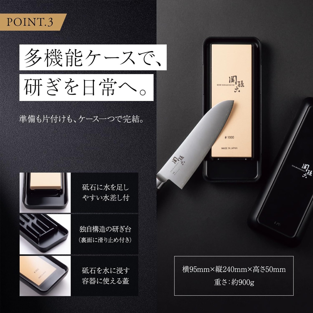 素材・材質:コンビ砥石:白色アルミナ(#1000&4000)、収納ケース=研ぎ台・蓋:ABS樹脂(耐熱温度80℃)、滑り止め:熱可塑性エラストマー(耐熱温度80℃)