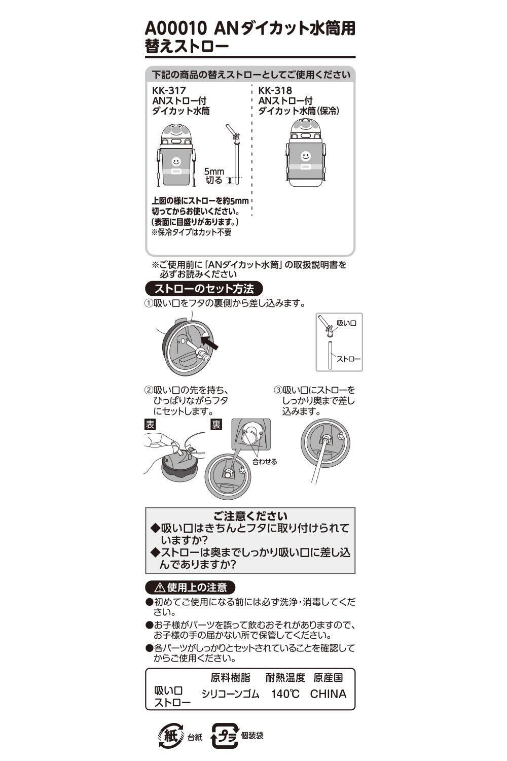 アンパンマン ストロー付 ダイカット 水筒用 替えストロー