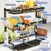 ADBIU シンク上 (31インチ≤シンクサイズ≤39.5インチ) 食器乾燥ラック (拡張可能な高さ/長さ) スナップオンデザイン 3段キッチン 大型食器水切り ステンレススチール 収納カウンターオーガナイザー