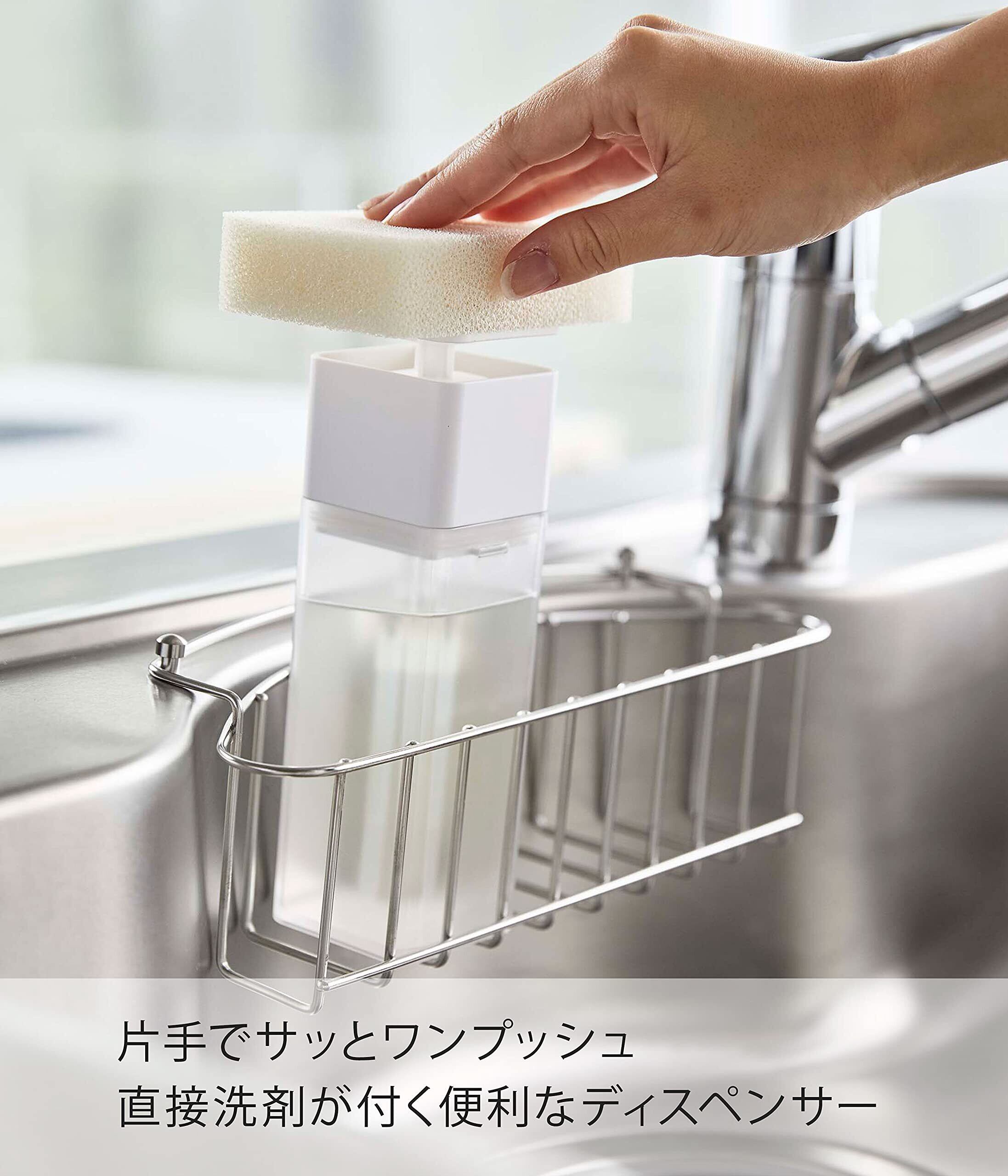 片手で押すだけでスポンジに直接洗剤が付く便利なディスペンサー。