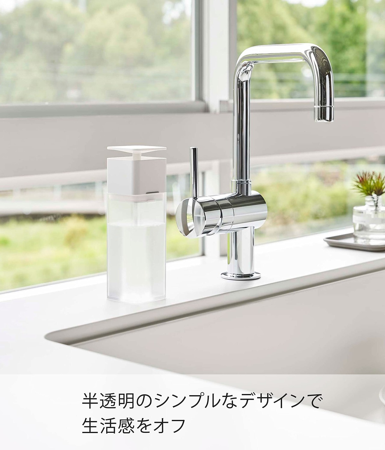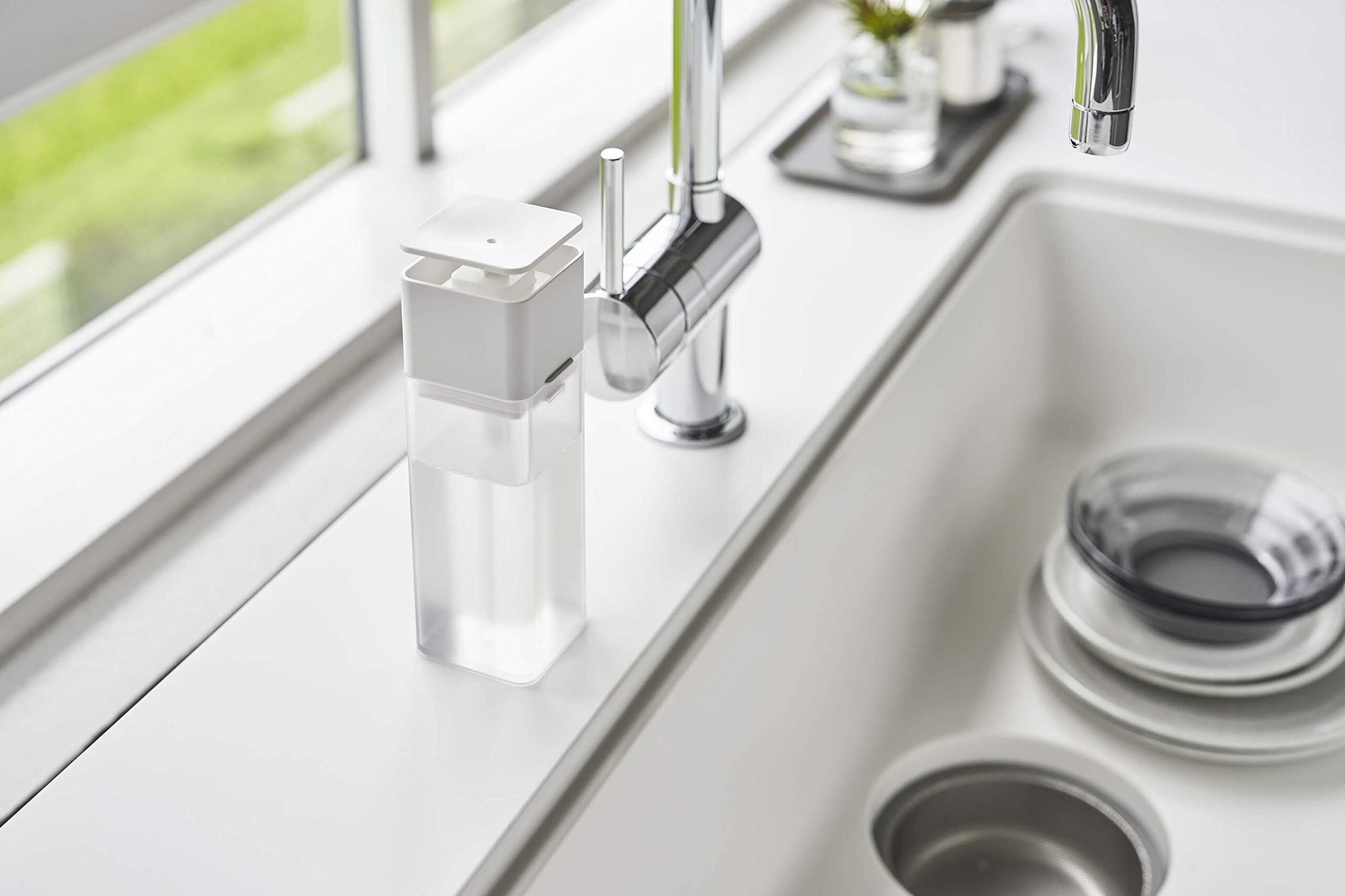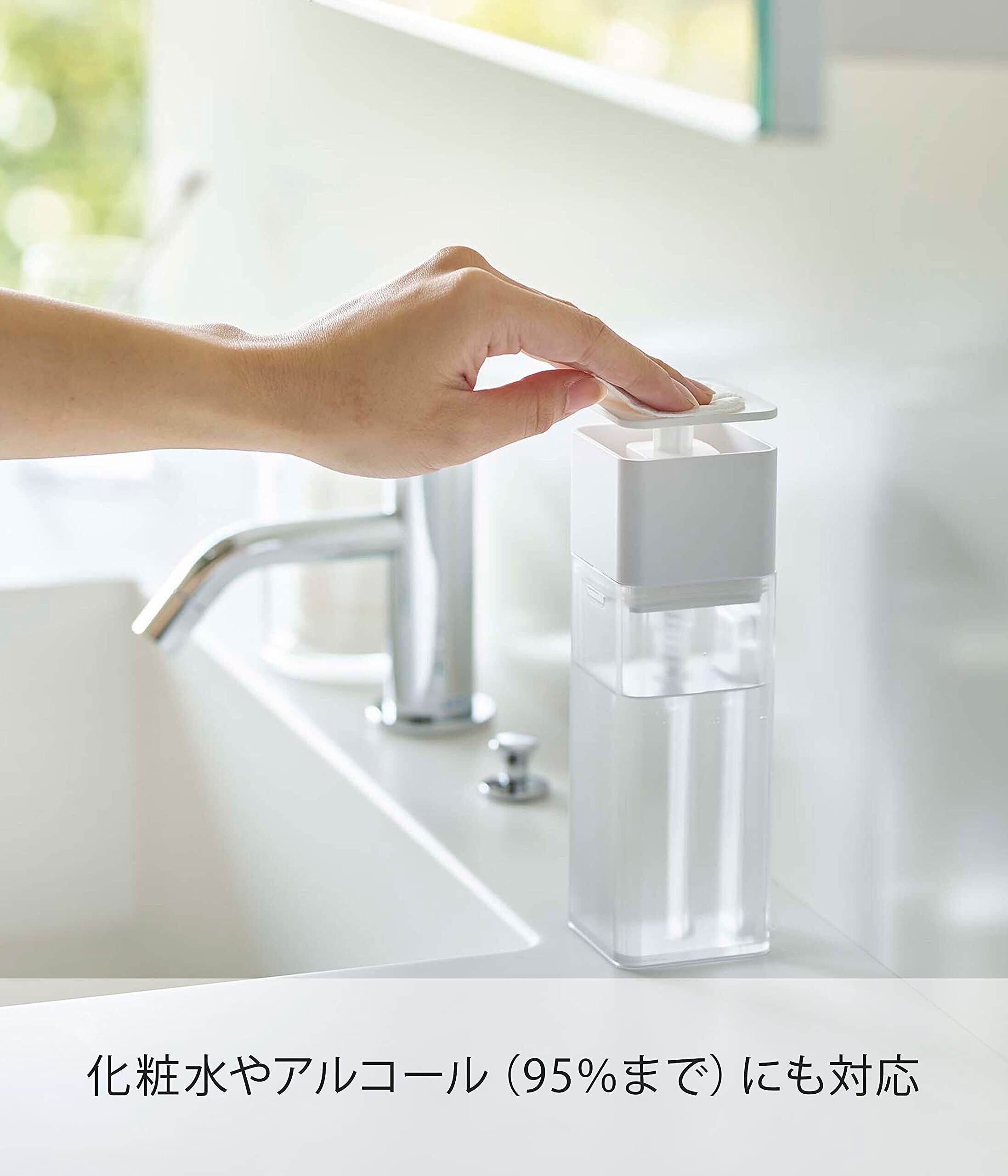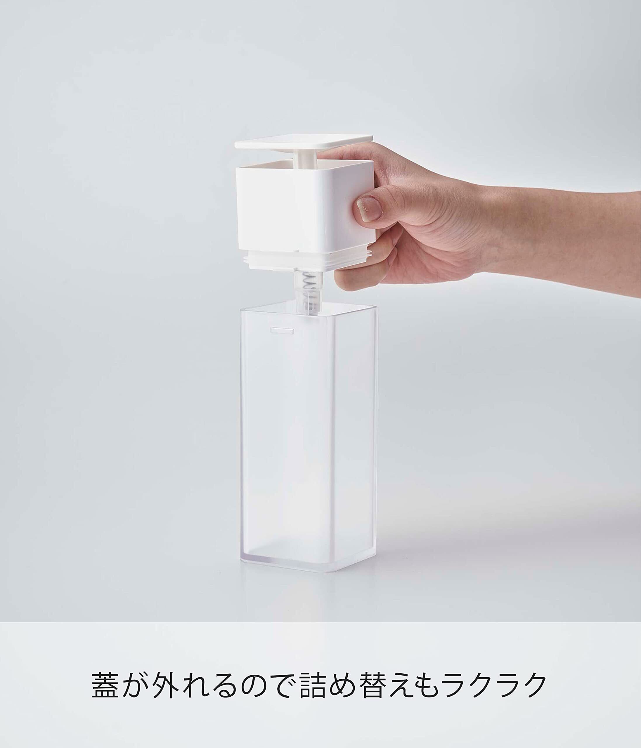 山崎実業(Yamazaki) 片手で出せる ディスペンサー ホワイト 約W5.5XD5.5XH18.5cm プレート 洗剤 化粧水 アルコール対応 お手入れ簡単 5215