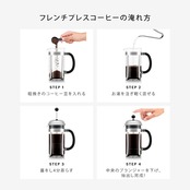 ●フレンチプレス式コーヒーメーカー。コーヒー本来のこくや香りを楽しめる