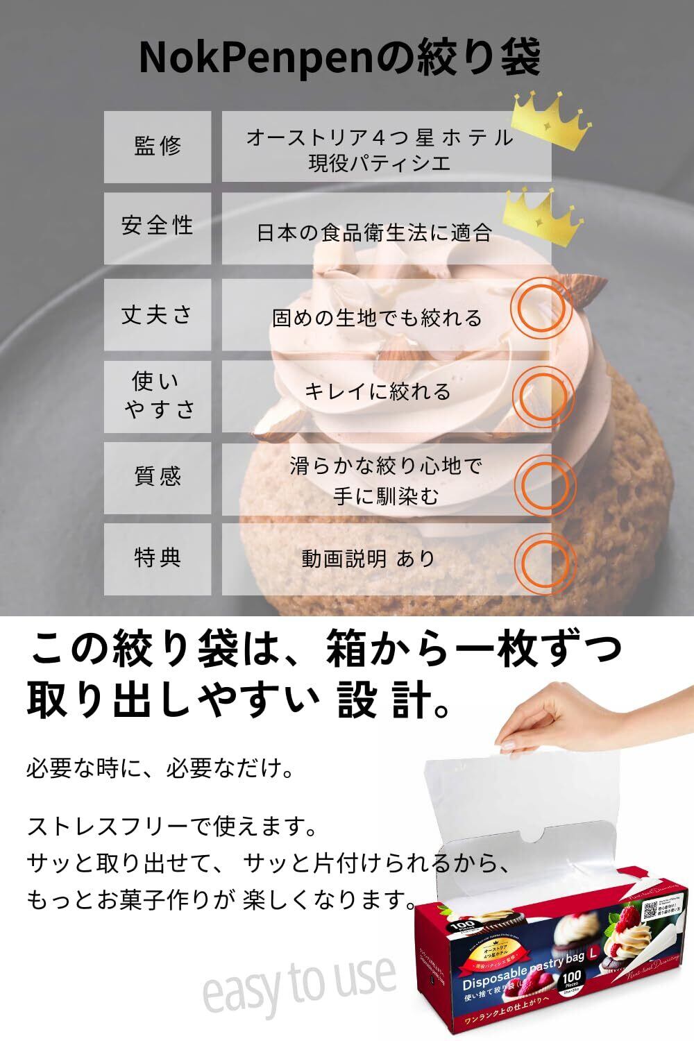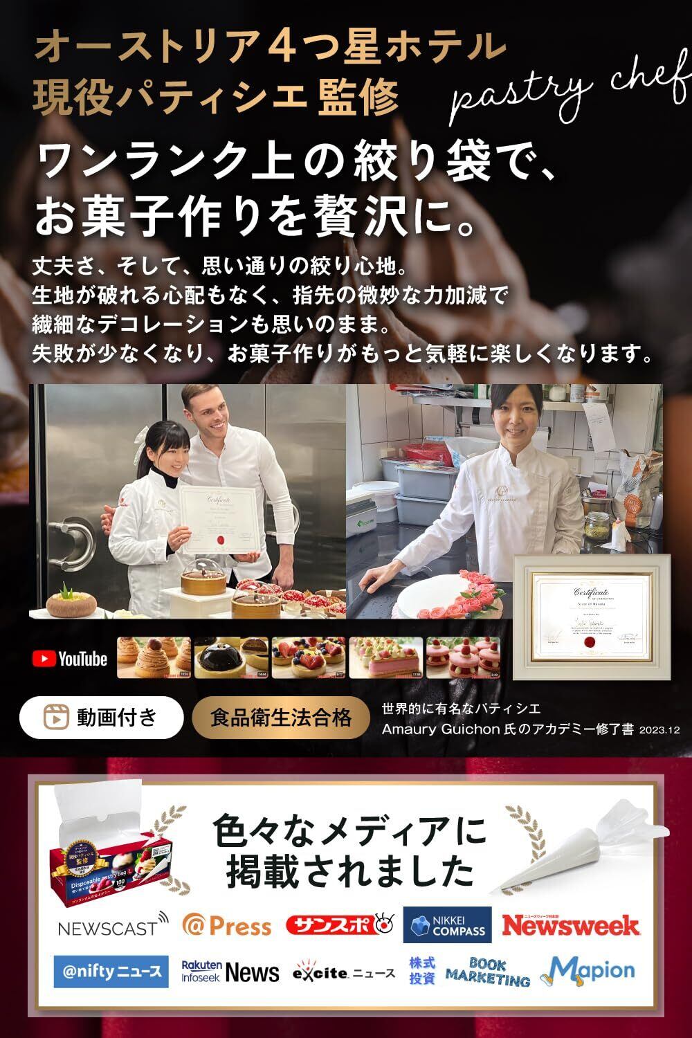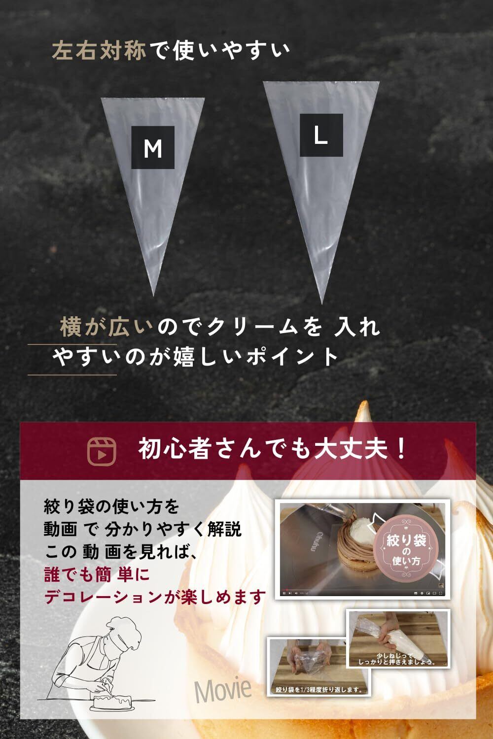 【 4つ星ホテル現役パティシエ監修 】製菓道具として重要な絞り袋を使用している現役パティシエが、使いやすさと耐久性を保証。