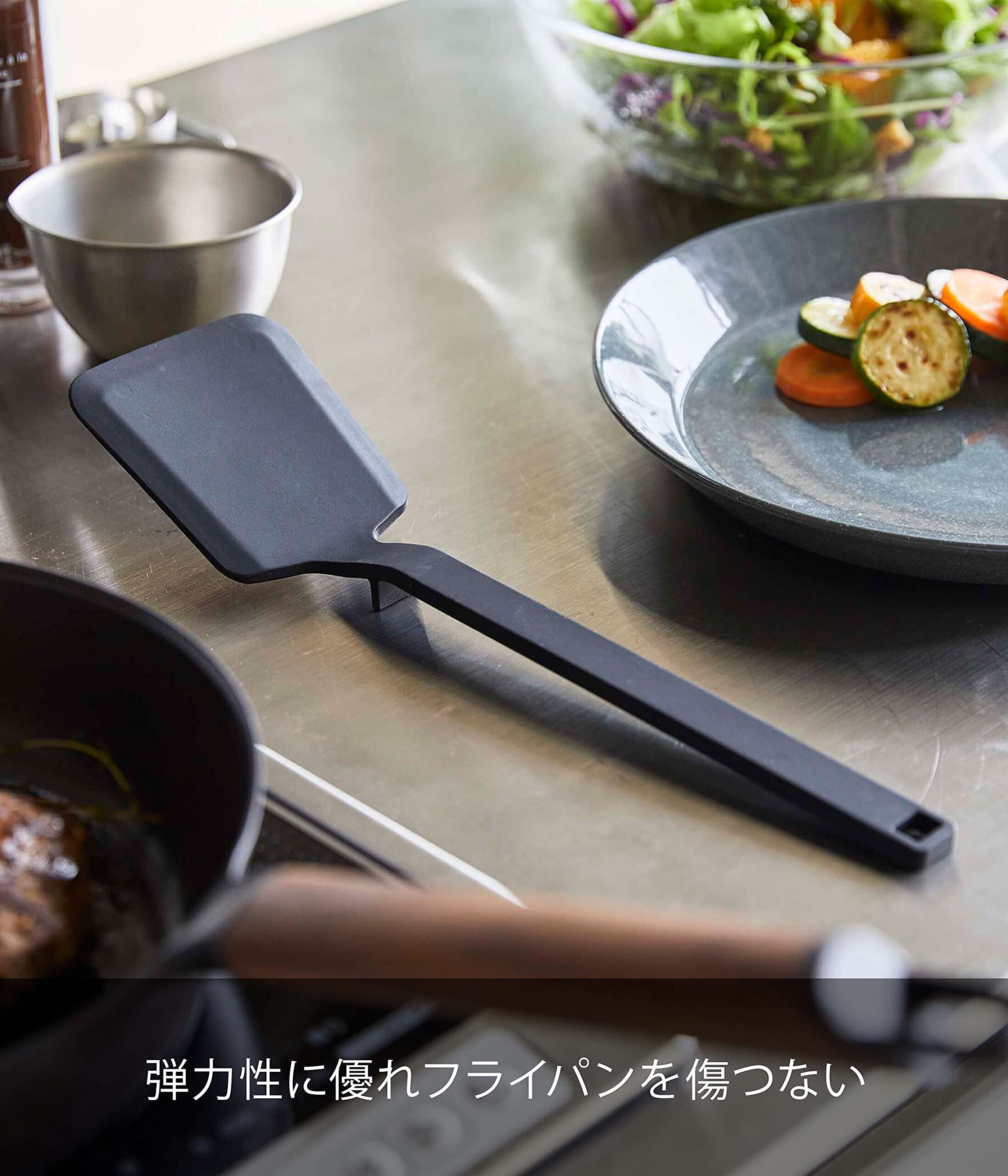 山崎実業(Yamazaki) シリコーン フライ返し ブラック 約W9XD4.5XH31cm タワー tower ヘラがしなりすくいやすい シリコン 耐熱 5192