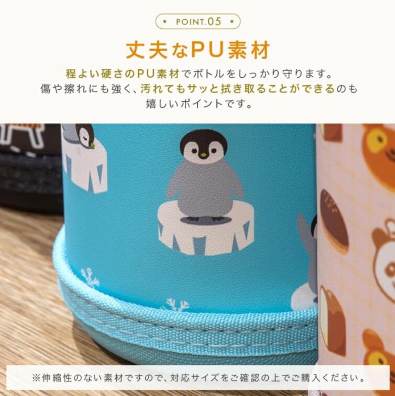 【PU素材でお手入れ簡単 水筒ケース】 PU素材を採用し、水滴や雨からしっかり保護。汚れもサッと拭き取れるのでお手入れラクラク。