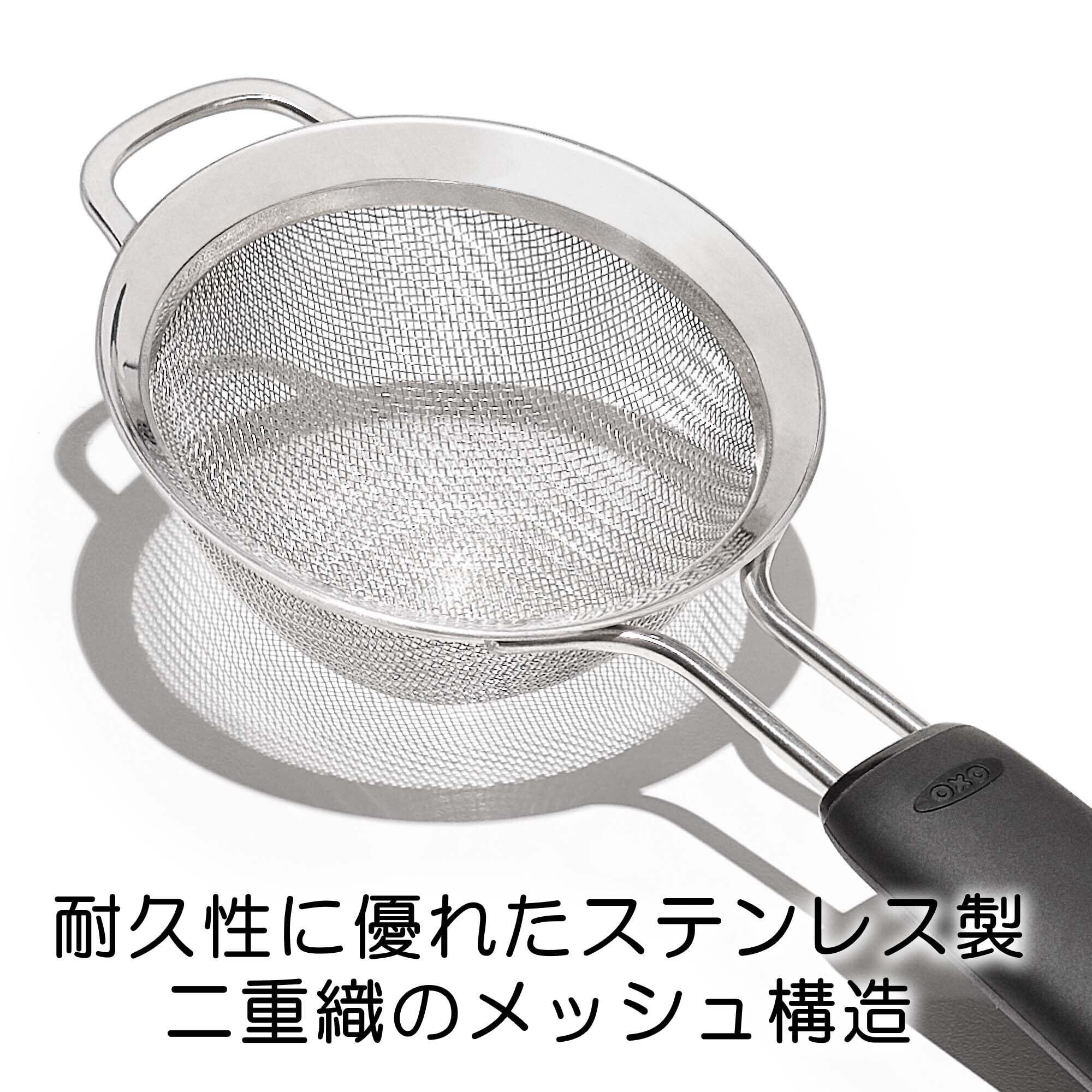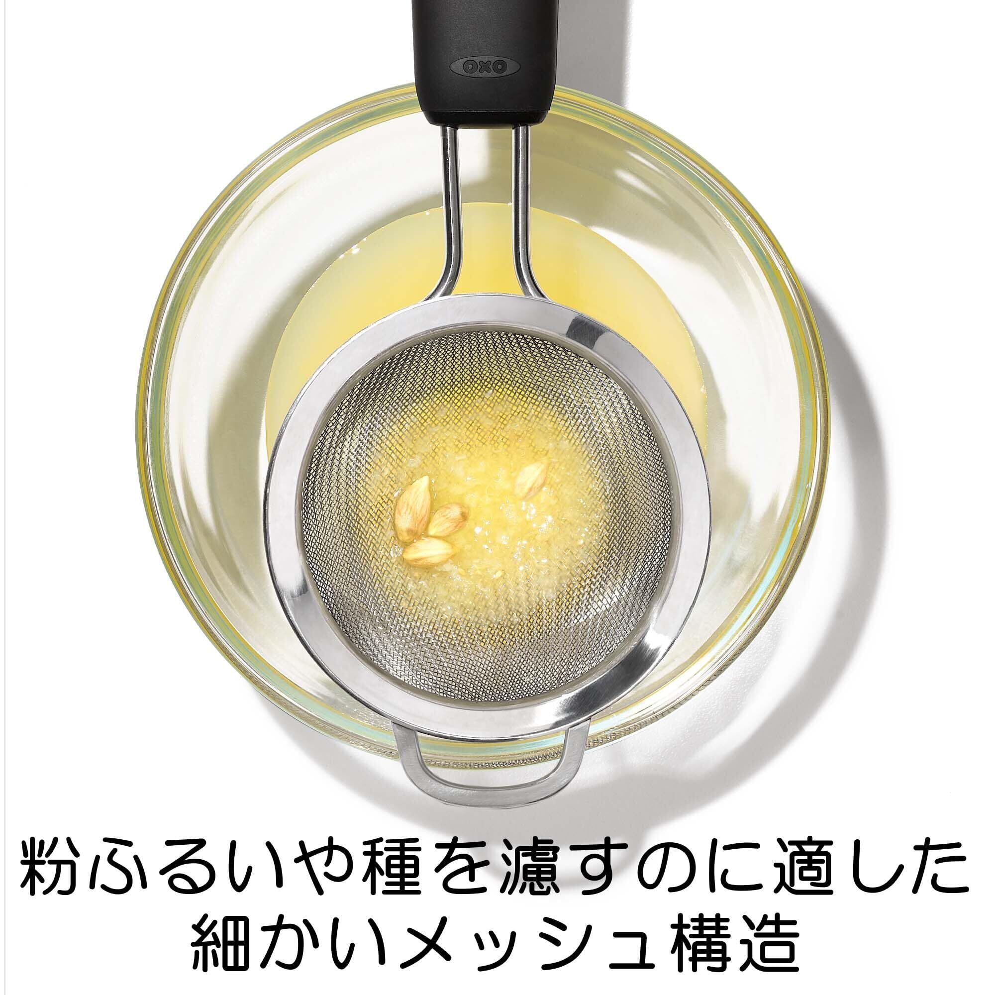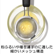 細かいメッシュ構造で、ココアやシュガーパウダーの粉ふるいや、レモンやライムの種を濾すときなどにも便利