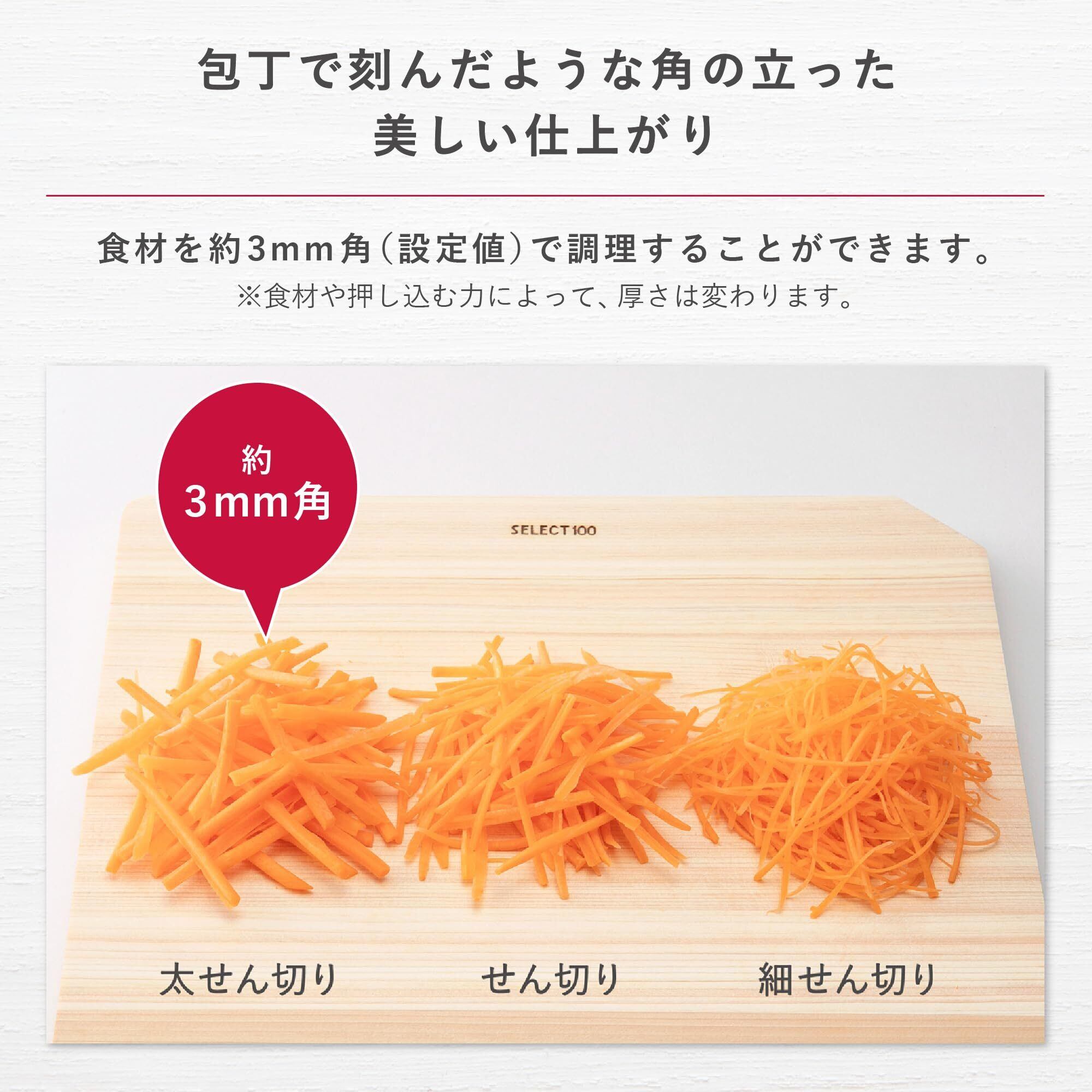 料理頻度の高い千切りサイズの3mm幅。良く切れる特殊クランク刃付け。