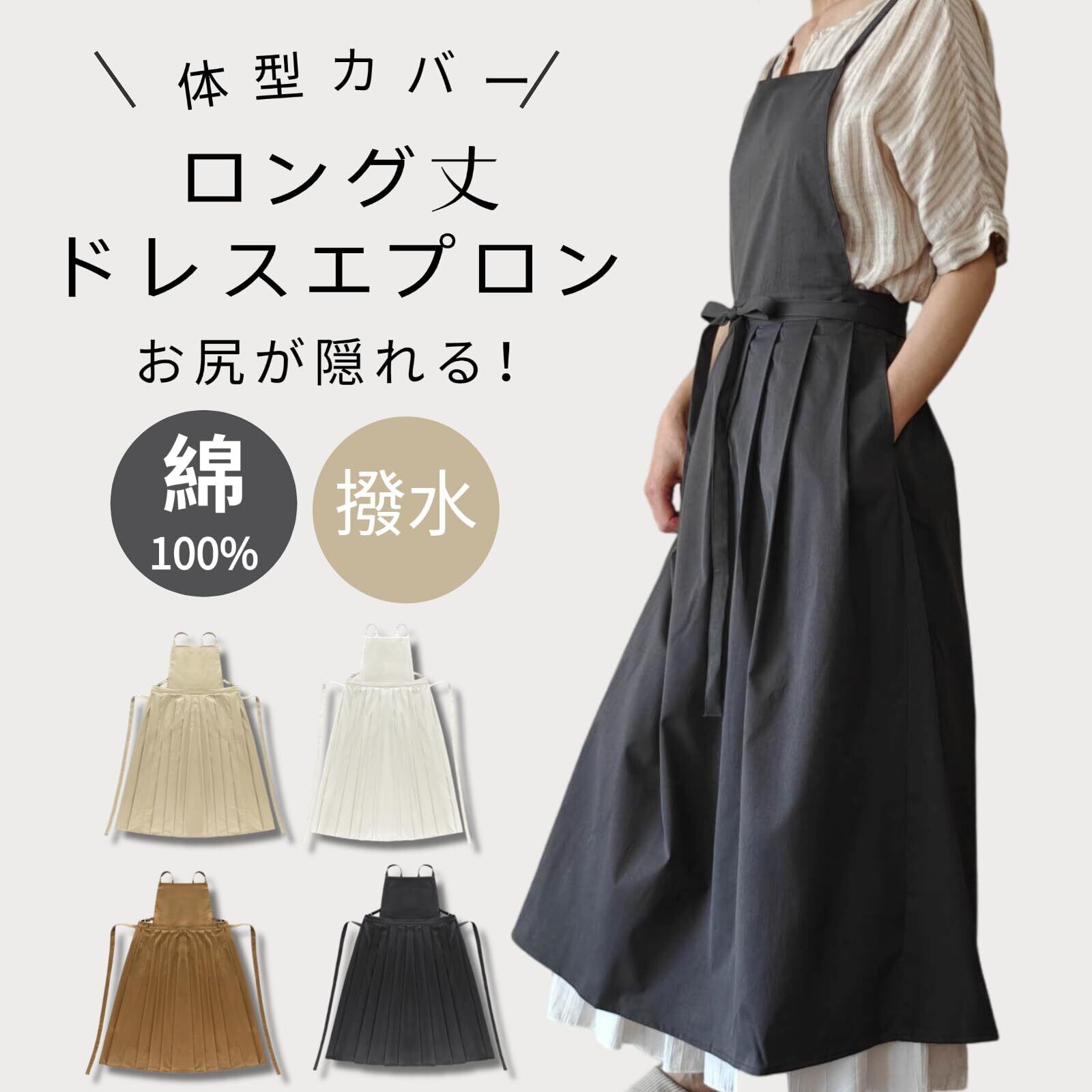 エプロン レディース おしゃれ 可愛い 北欧 ドレスエプロン ロング マキシ丈 おしり隠れる ワンピース 大きめ 体型カバー カフェ 綿 撥水 無地 黒 シンプル 保育士 美容師 サロン トリマー