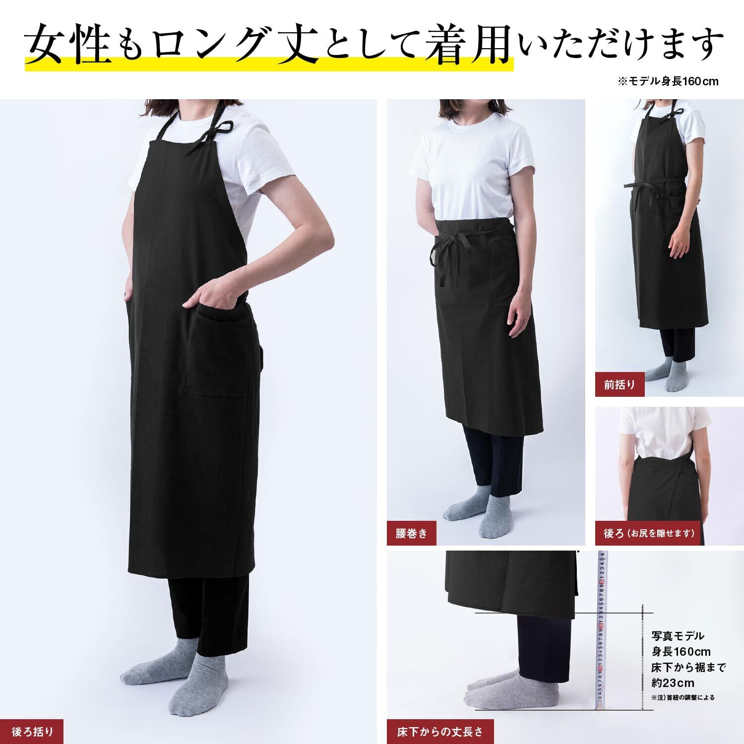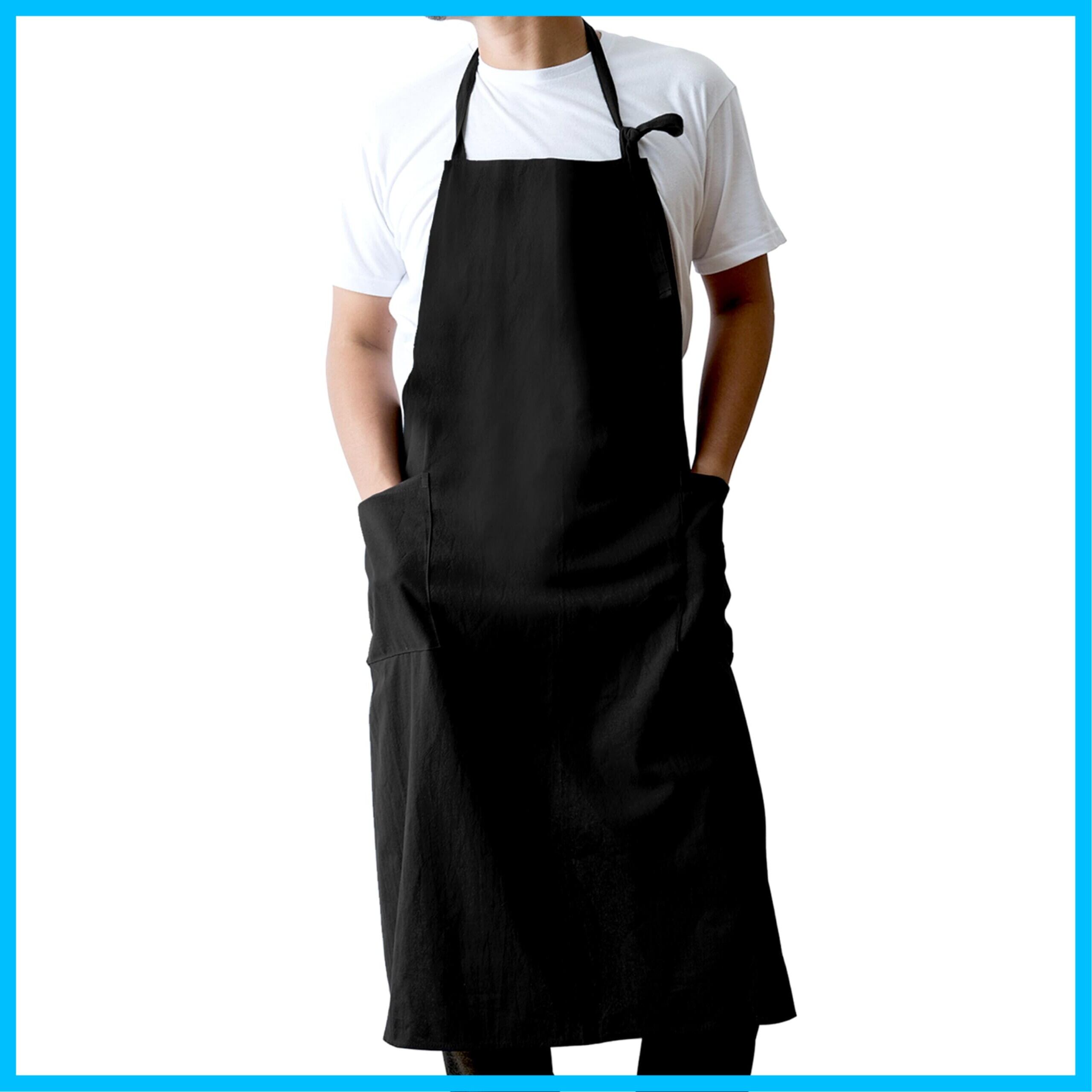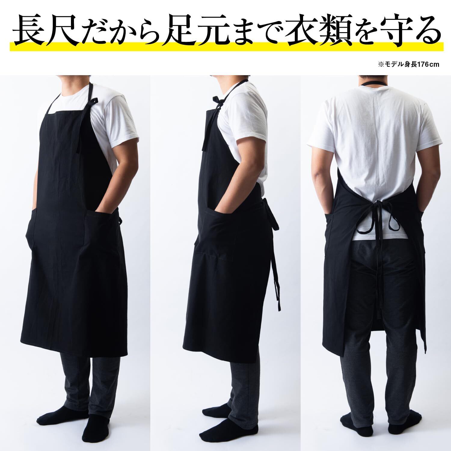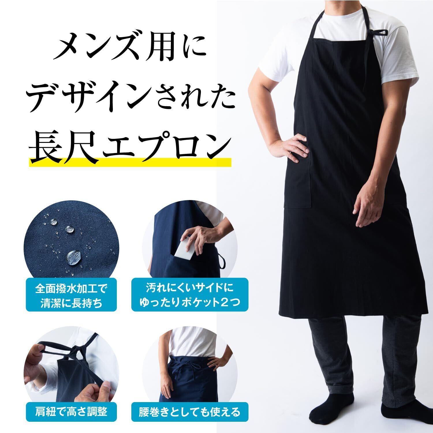エプロン メンズ 大きいサイズ ロング丈 撥水 おしゃれ かっこいい 無地 ポケット付き カフェ・保育士・料理用 首掛け/腰巻き 2way 作業用