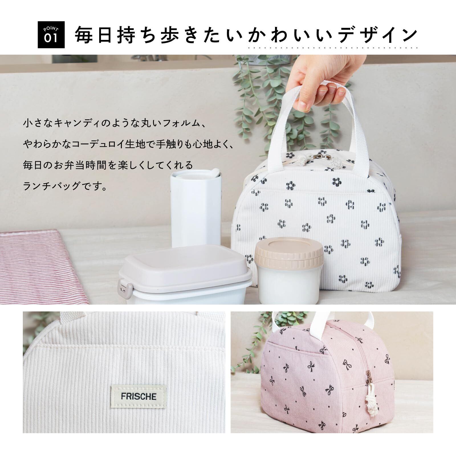 【丸くてかわいいフォルムで、毎日のお弁当を楽しく】小さなキャンディのようにころんとした形が魅力のランチバッグ「Petit Bonbon」。やわらかなコーデュロイ素材で、手触りも見た目もやさしい印象に。通勤・通学やピクニックまで、毎日持ち歩きたくなるデザインです。【ちょうどいいサイズ感】お弁当箱やスープジャー、500mlペットボトルもすっきり収納。見た目はコンパクトなのに、必要なものはしっかり入るちょうど良さです。