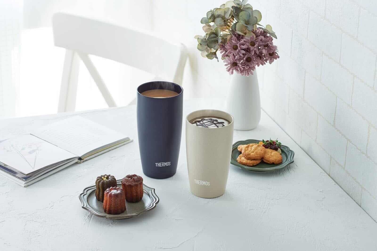 陶器調デザインの真空断熱タンブラー。内面セラミック加工で汚れがつきにくい。食洗機対応モデル。