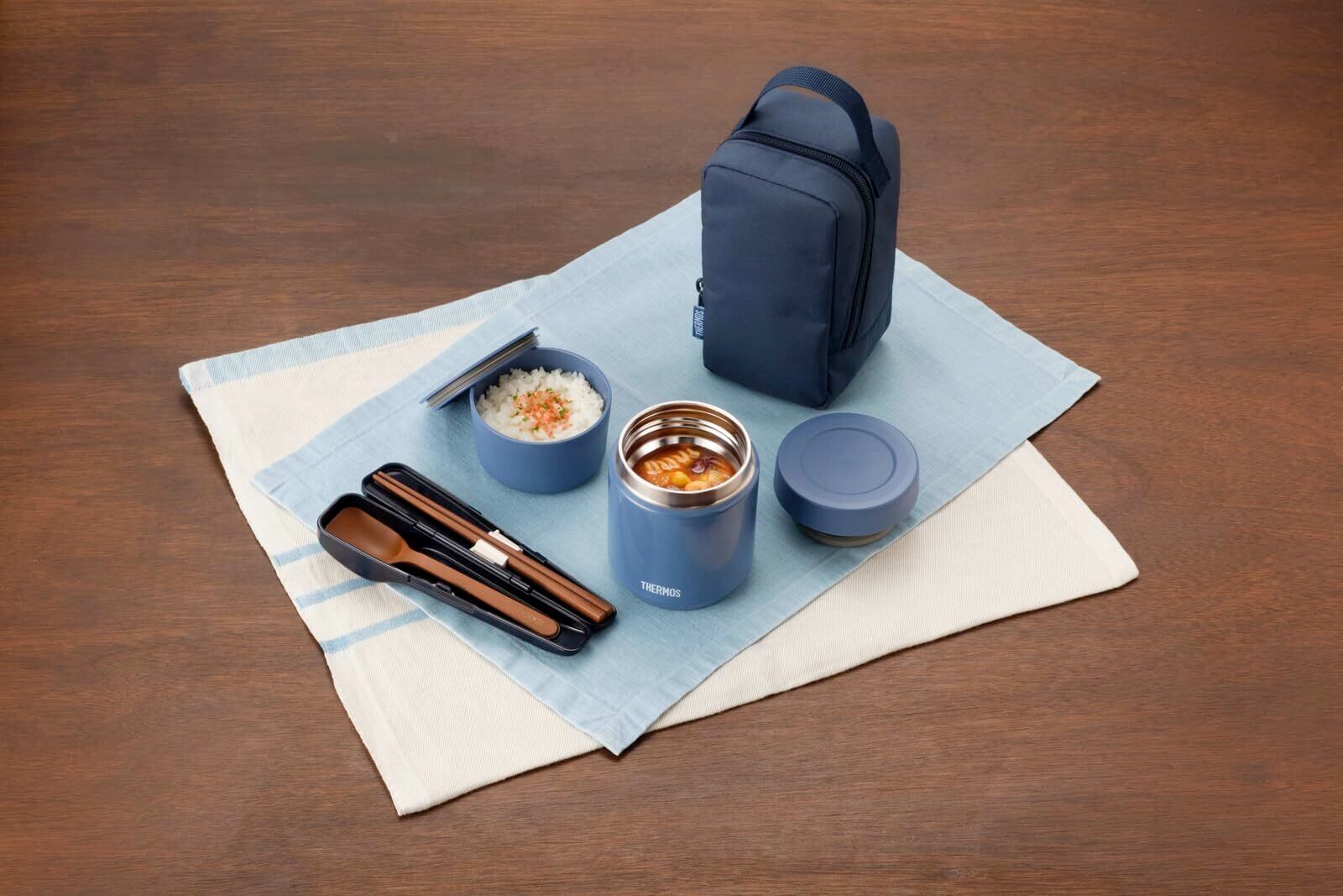 スープジャーとおかず容器がセットになったランチセット。断熱構造の専用ポーチ付き