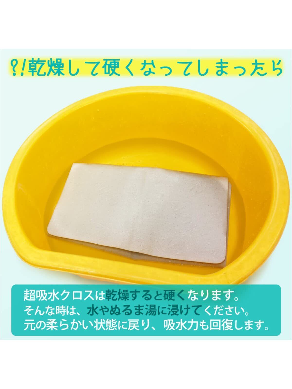 乾燥すると硬くなります。使用前に水またはぬるま湯に浸し、柔らかい状態にしてよく絞ってからご使用ください。