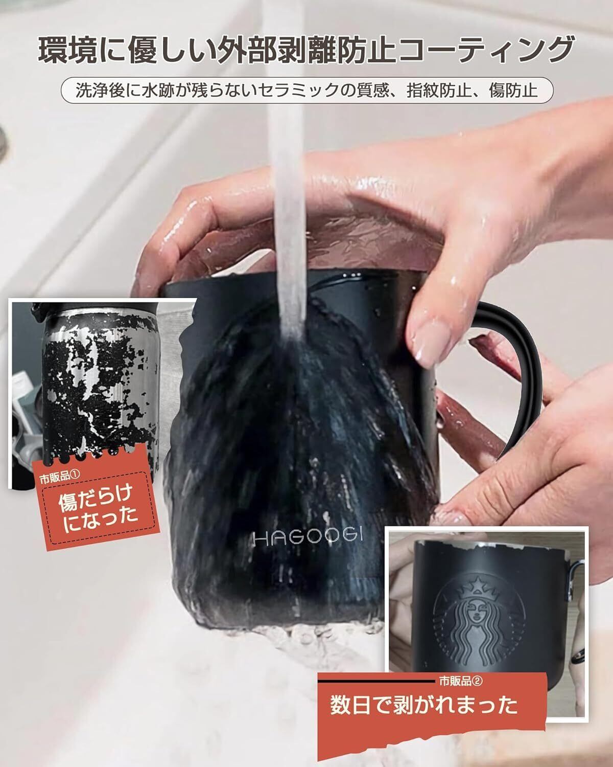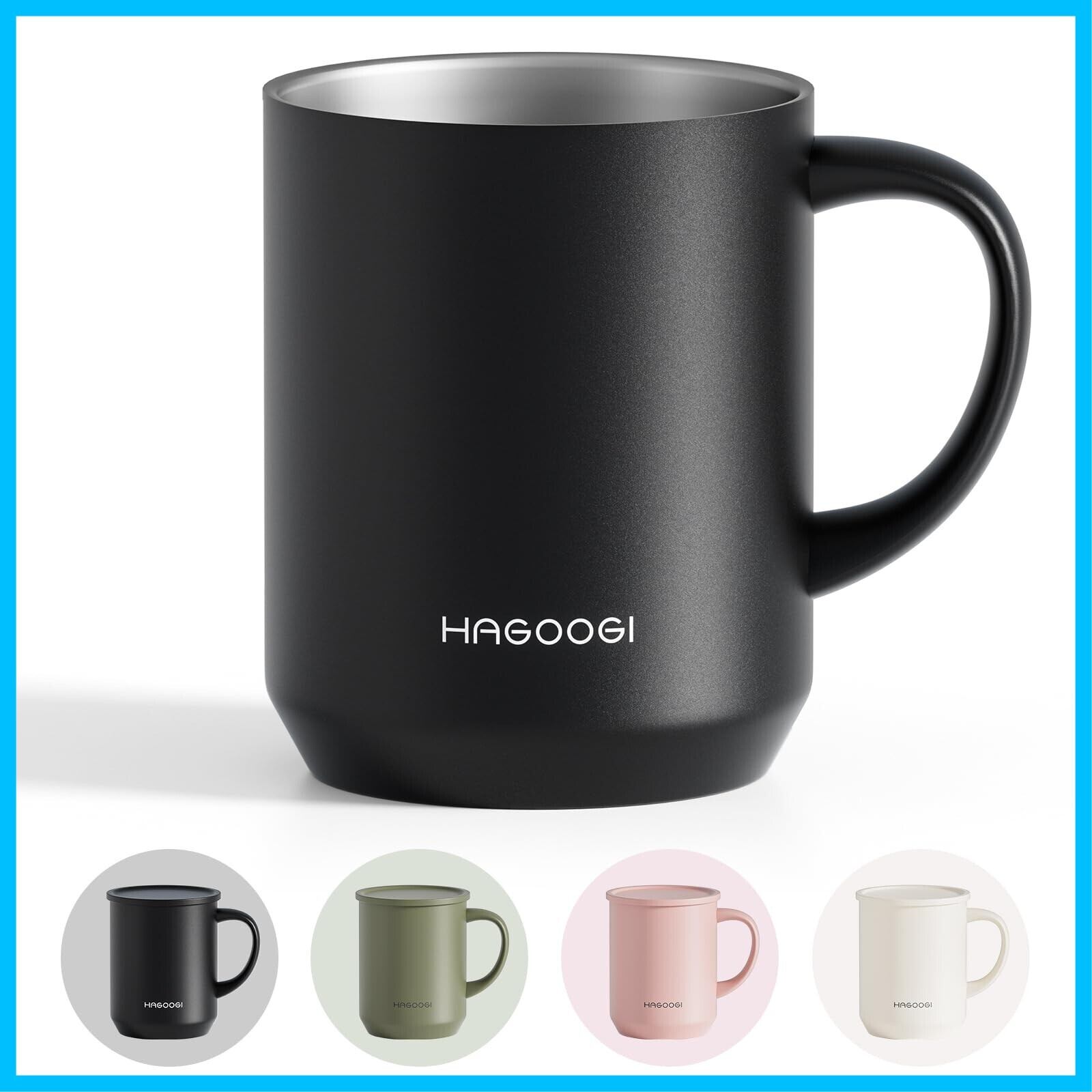 HAGOOGI マグカップ 蓋付き 保温 保冷 360ml 真空断熱 セラミックコーティング 二重構造 シンプル おしゃれ 家庭やオフィスに最適 ステンレスマグカップ コーヒーカップ バレンタインデー プレゼント ブラック