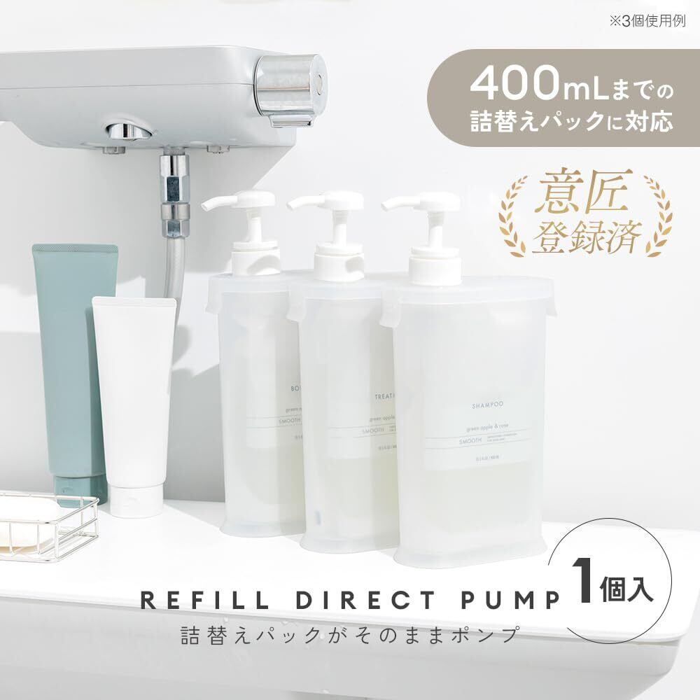 アイメディア(Aimedia) ディスペンサー 詰め替えボトル 袋ごと ポンプ 詰替え容器 スリムタイプ コンパクト 400ml対応 シャンプ― ボディソープ ホワイト 詰替えパックがそのままポンプ