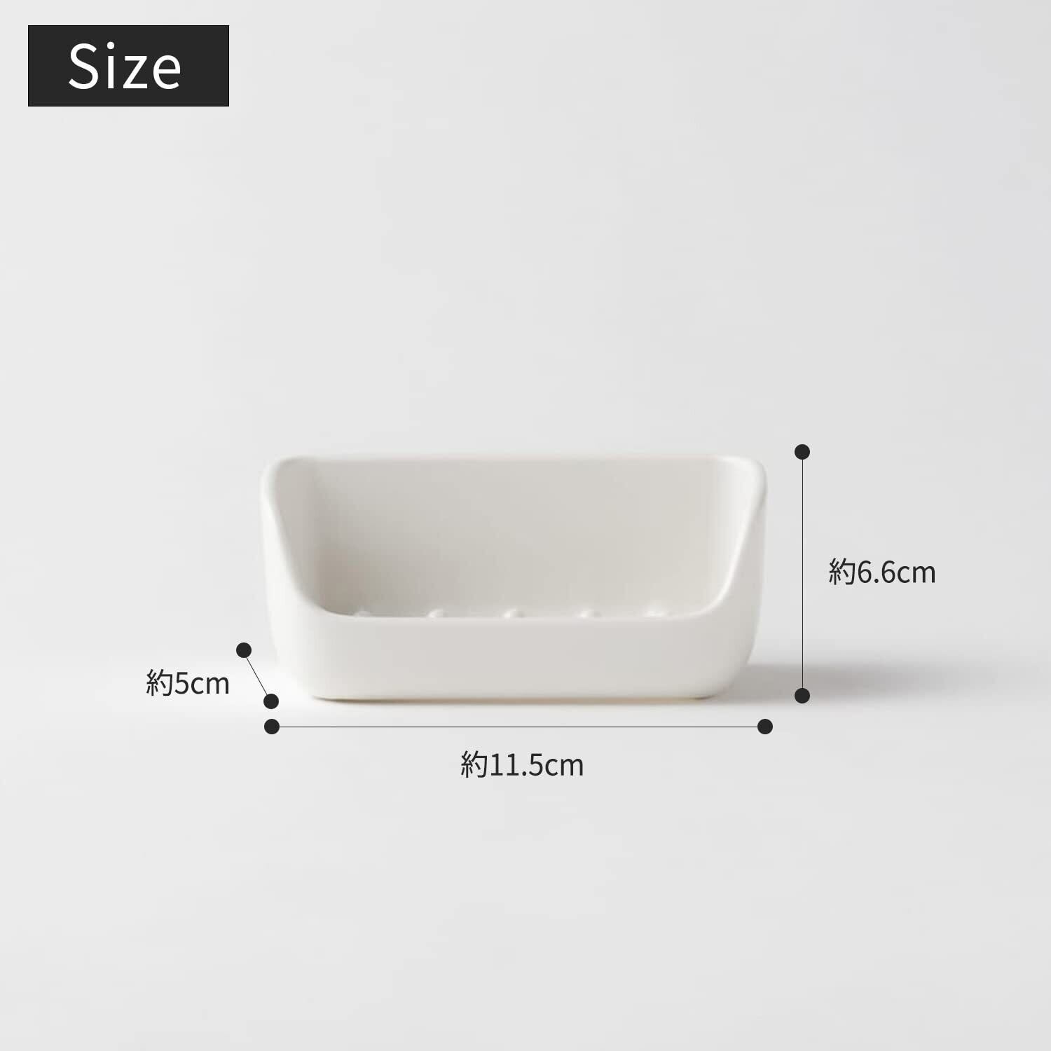 【主張しないシンプルなデザイン】石けん一つ分のコンパクトサイズ。浴室で邪魔に感じないサイズ、色、かたちを追求しました。シンプルなデザインで浴室の雰囲気と調和します。