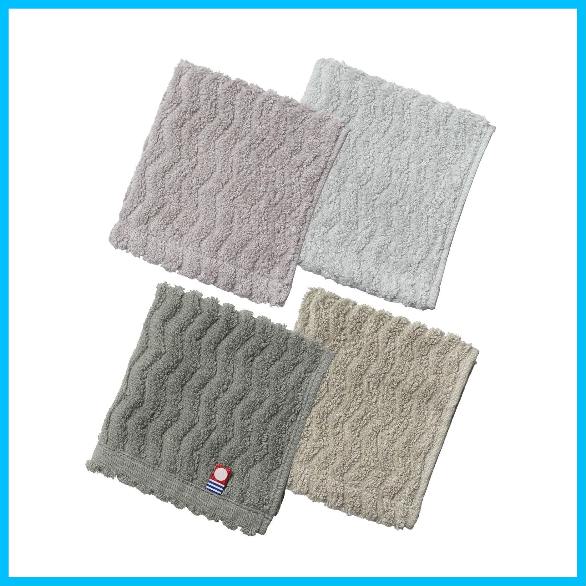 ハンドタオル 今治タオル 4枚セット 中厚 22cm角 綿100% 日本製 タオルハンカチ moffin モフィン 個包装 (4枚セット・柄ありアソート) cy-mf319-h4-b-as