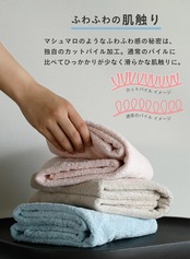 織り上がったパイルの先端を丁寧に刈り取る「カットパイル仕上げ」を採用。引っかかりにくく毛羽立ちも抑えられ、表面はなめらかでしっとりした手触りに。見た目にも上質感があり、使うたびにちょっとした贅沢気分を味わえます