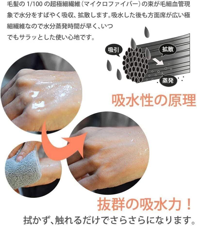 【抜群の吸水性】毛髪の1/100の超極細繊維(マイクロファイバー)の束が毛細血管現象で水分をすばやく吸収、拡散します。吸水した後も方面席が広い極細繊維なので水分蒸発時間が早く、いつでもサラッとした使い心地です。