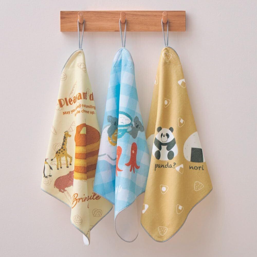 子どもが使いやすい、大きめループ付き ―デザイン・スタイリング―・子どもが使いやすい仕様のハンドタオル・大きめループなので、子どもが園のフックにかけやすい・男の子も女の子も使える豊富な色柄展開をご用意・毎日の洗い替えにも便利な3柄セット―素材―・吸水性抜群な綿100%パイル素材を使用―機能―・裏面に便利なお名前スペース付き