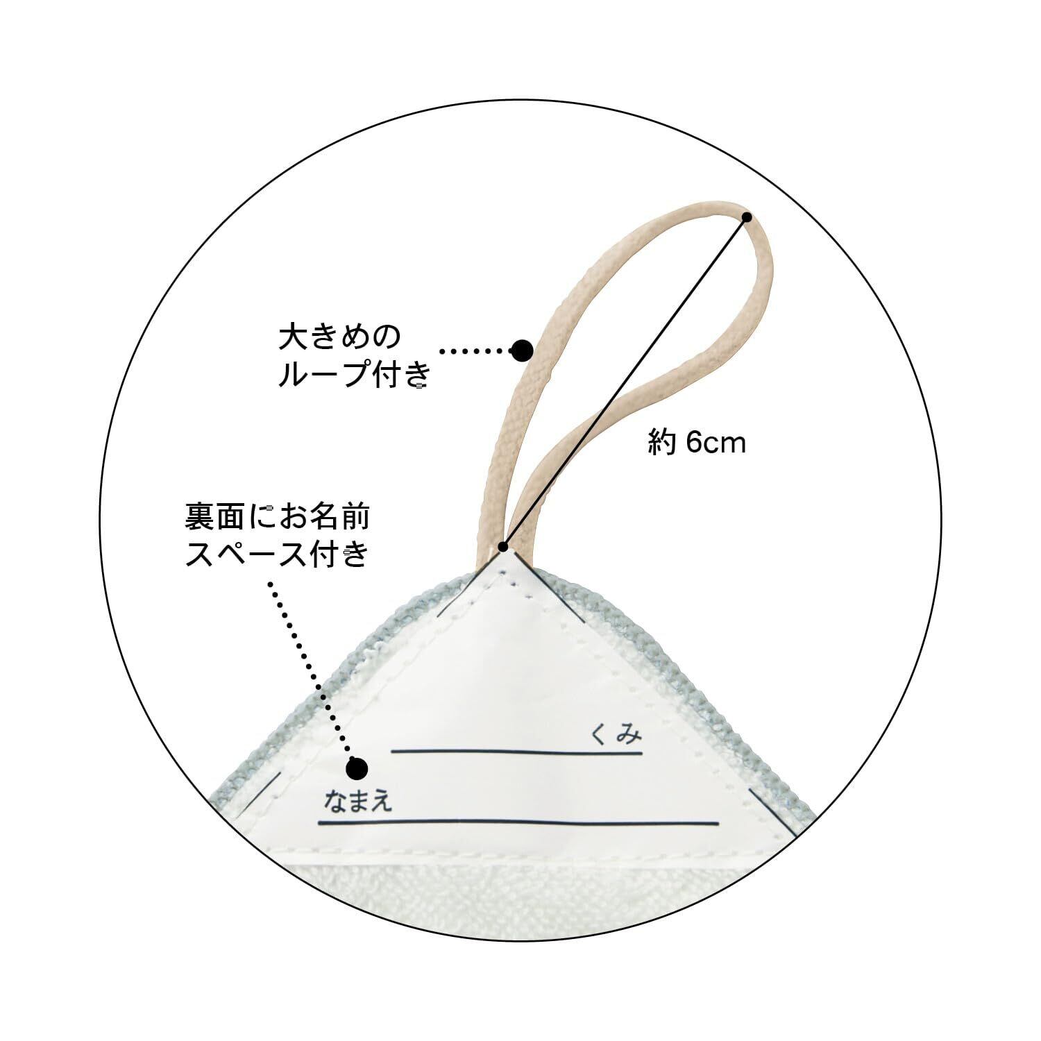 ●品質/綿100%●お名前スペース付き●ループの長さ/約6cm(縫い付け部から先端まで)●中国製