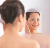 ●浴室でも快適に安心してご使用いただく為、鏡表面にくもり止め加工を施した、軽くて割れない樹脂製ミラーです。