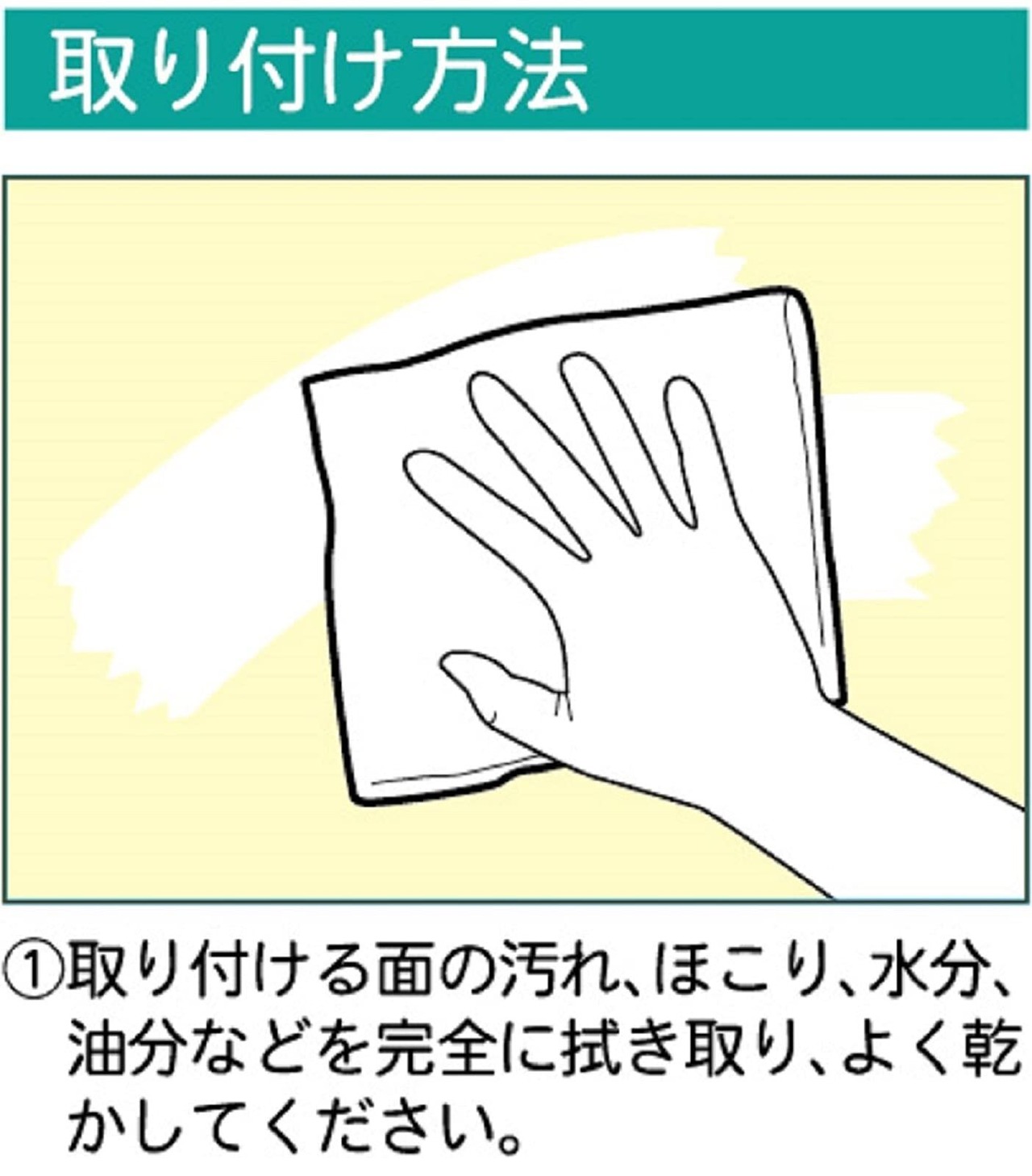 ●ツヤ消し、小さな凹凸面でも取り付けられます。(タイル面、プラスチック面(ユニットバスなど)、金属塗装面、ステンレス面、ガラス面、化粧合板、壁紙(塩化ビニール製)など。