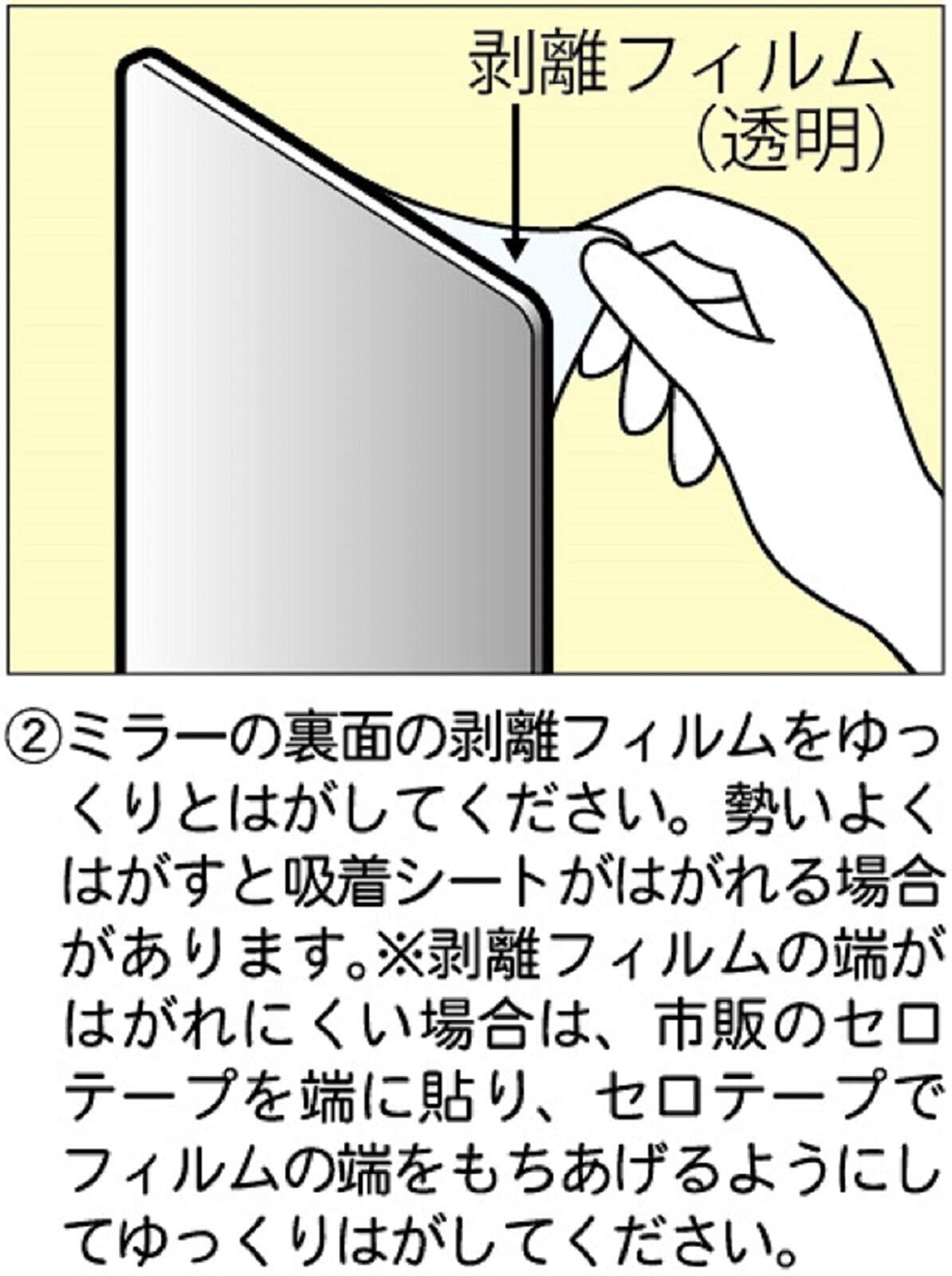 ●樹脂製ミラーのため貼り付け面や貼り付け時の押さえ方で歪んで見える事があります。