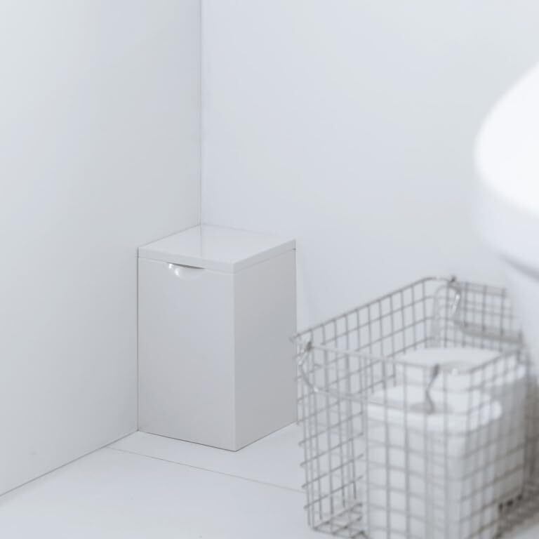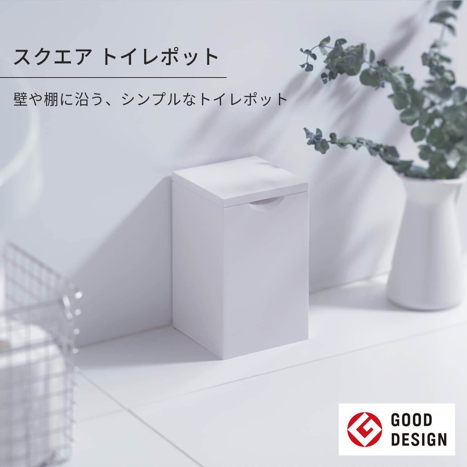 マーナ (marna) スクエア トイレポット (ふた付き/ホワイト) 蓋付き ゴミ箱 (取り外し可能 内ケース付き/衛生的) 日本製 W062W
