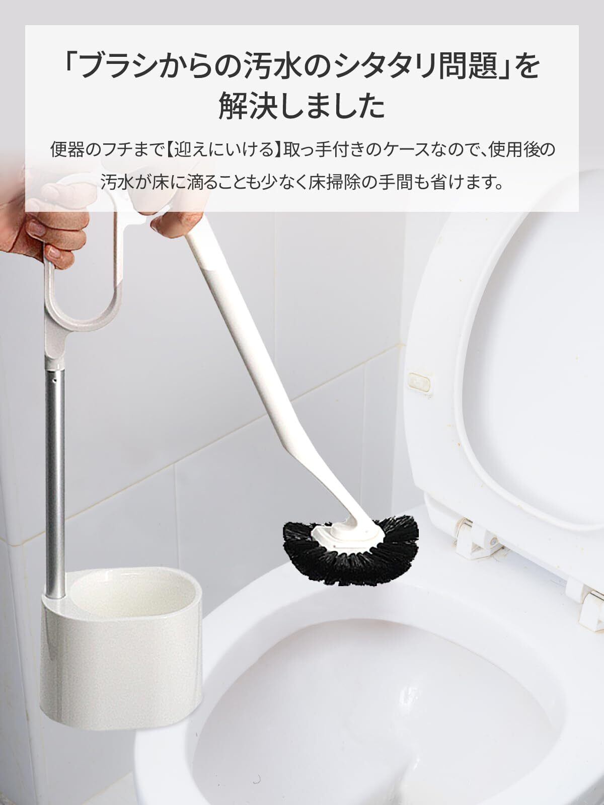 日本クリンテック(Nihon Clean tech) トイレブラシ ケース付き おしゃれ フチ裏に届く お手入れ簡単 水切れ 取って付き スタンド 新生活 セット 幅 9.5cm 全長46cm ホワイト
