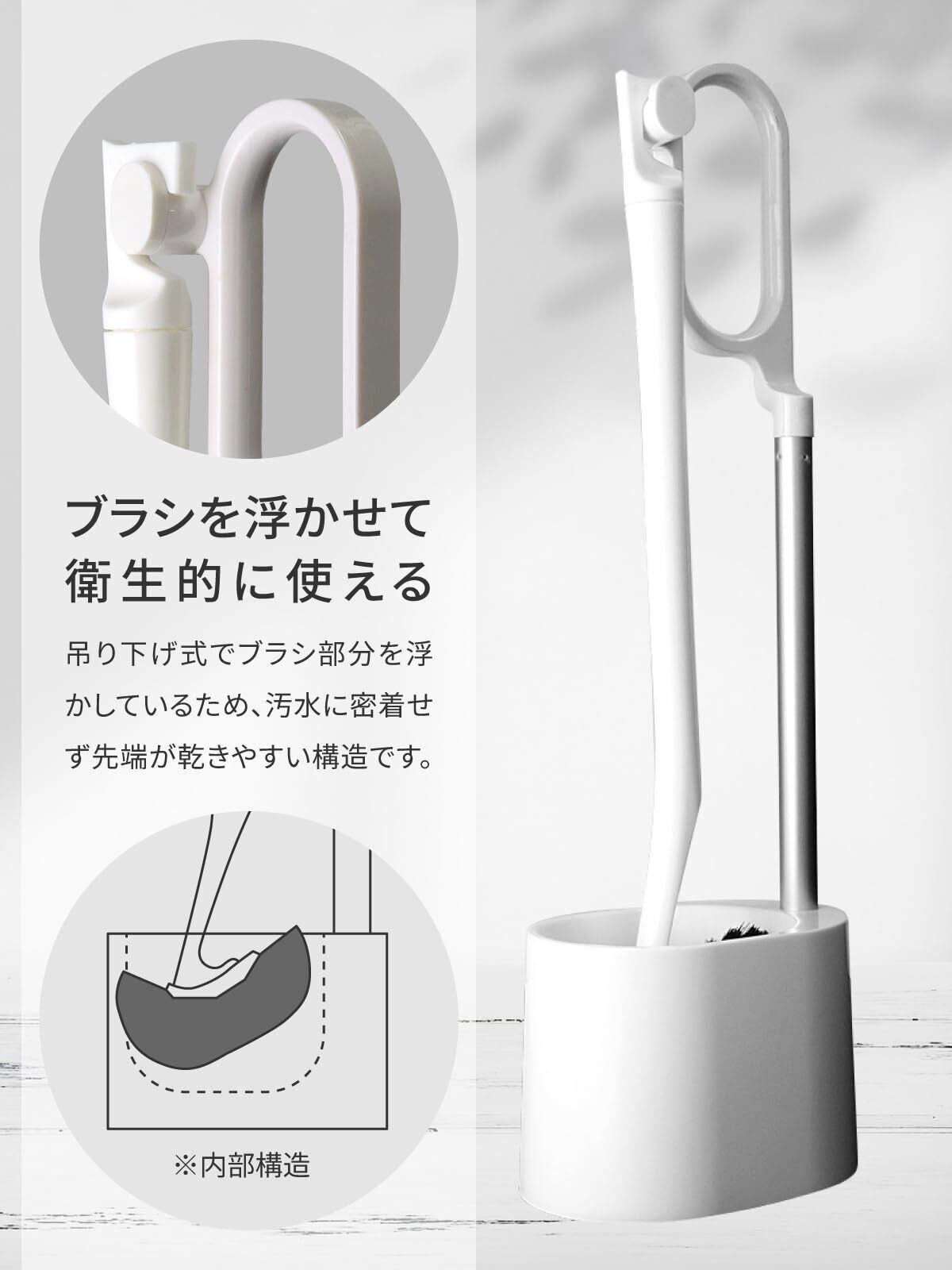【衛生的な設計】吊り下げ式だから乾きやすく汚い水にブラシが密着することがないので、衛生的にご使用いただけます。 また軽量でケースは持ち手付きだから軽々と持ち上げられるので床に滴り落ちる心配がありません。