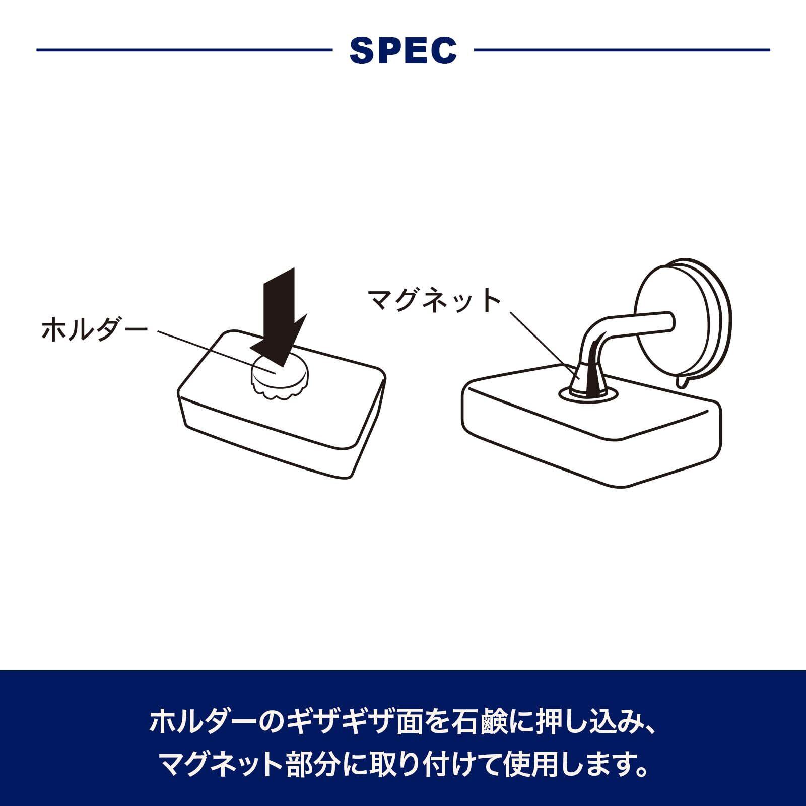 固形石鹸にホルダーをセットし、磁力でキャッチして固定出来る優れ者。面倒だったぬめりのお掃除やソープディッシュのお手入れから解消され、クリーンでスッキリとした洗面周りを維持します。バスルームやキッチンにもと、リピーター続出の人気アイテム。固形石鹸も長持ちします。