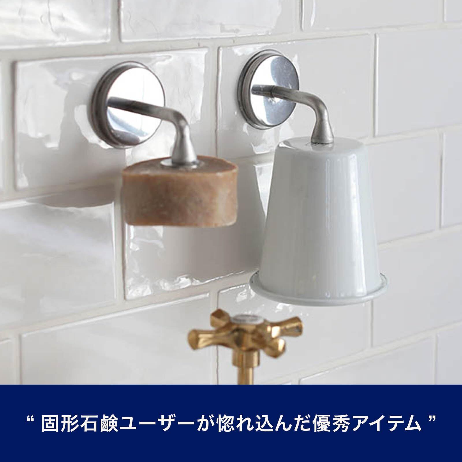 石鹸を宙に浮かした状態で収納する吸盤式のソープホルダー。いつでもサラサラの石鹸が使えるのは気持ちがいいし、衛生面でも安心です。