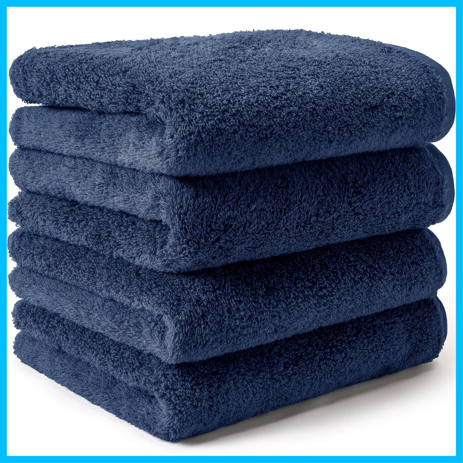 AIFY リゾートタオル 無撚糸フェイスタオル 4枚セット 綿100% ふわふわ 厚手 速乾 吸水 ホテル仕様 長持ち 肌にやさしい ギフト プレゼント 一人暮らし 新生活 34×80cm ネイビー
