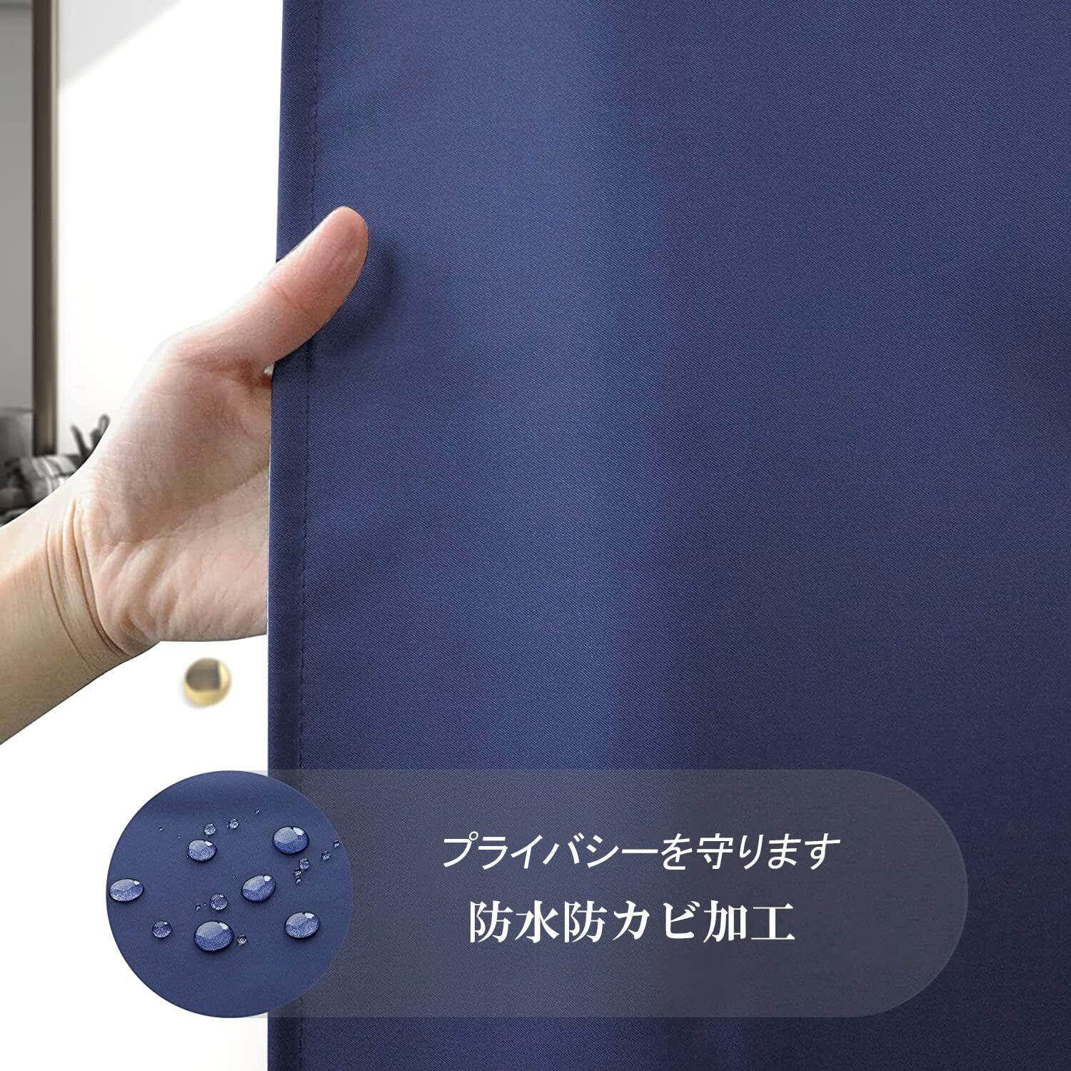 【サイズ】:135cm幅*150cm丈 素材:100%ポリエステル 仕様:防水防カビ パッケージ内容:本体*1+カーテンリング*9 カラー:ネイビー 無地