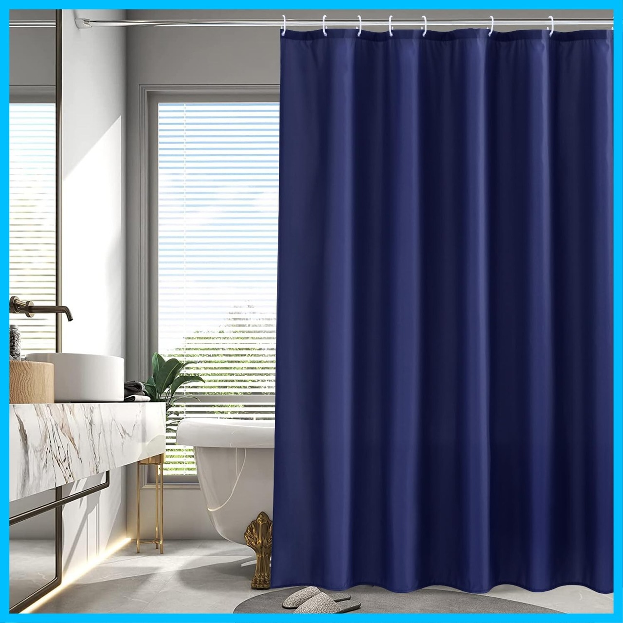 AooHome シャワーカーテン 目隠し 遮像 防カビ 防水 135cm幅 150cm丈 バス用品 ユニットバス ロング お風呂用カーテン 軽量 速乾 リング付き 無地 白 ネイビー