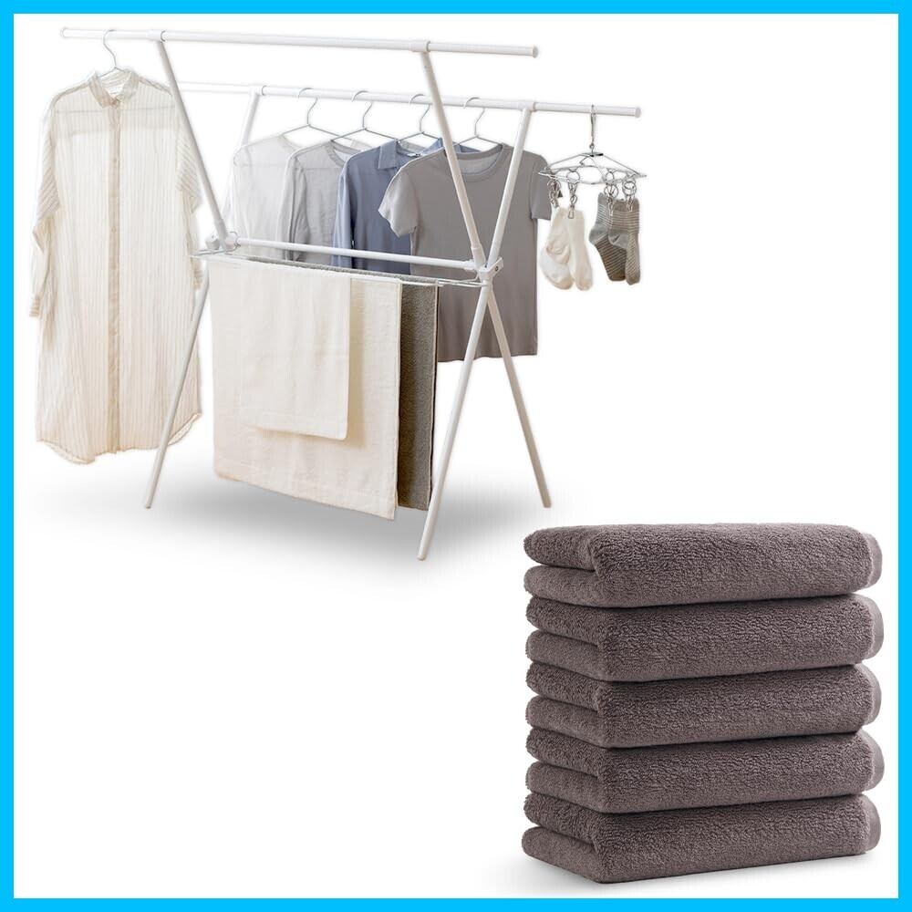 アイリスオーヤマ(IRIS OHYAMA) 伸縮自在で洗濯物の量で調節可能なコンパクト洗濯物干し 布団も干せる頑丈設計 約5人用 幅約92~152×奥行約64×高さ約127.5 ホワイト STMX-920×アイリスプラザ フェイスタオル 5枚セット チャコール 綿100% 34×80 タオル