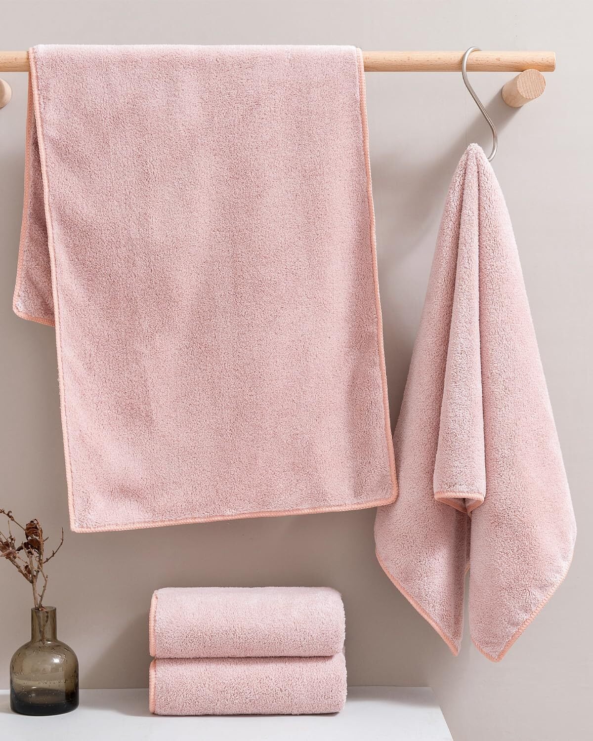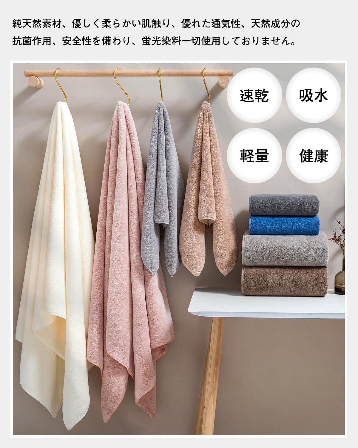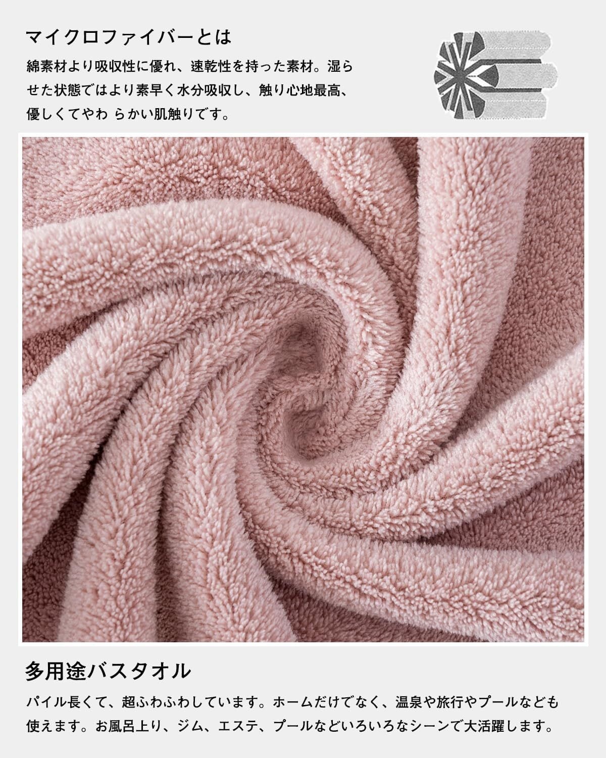【ふかふかソフトな風合い】:ポリエステル80%、ナイロン20%高級マイクロファイバー素材を採用 - このタオルは毛髪の1/100超微細繊維(マイクロファイバー)で作られたバスタオルです、触り心地最高、優しくてやわ らかい肌触りです、やさし い仕上げに蛍光染料は使用 しておりません。品質:このバスタオルが色褪せない、毛羽落ちしないことを保証します。