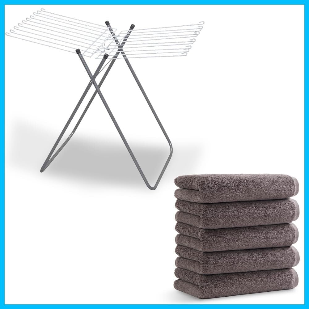 アイリスオーヤマ 物干し タオルスタンド 20枚分 THE830R×アイリスプラザ フェイスタオル 5枚セット チャコール 綿100% 34×80 タオル