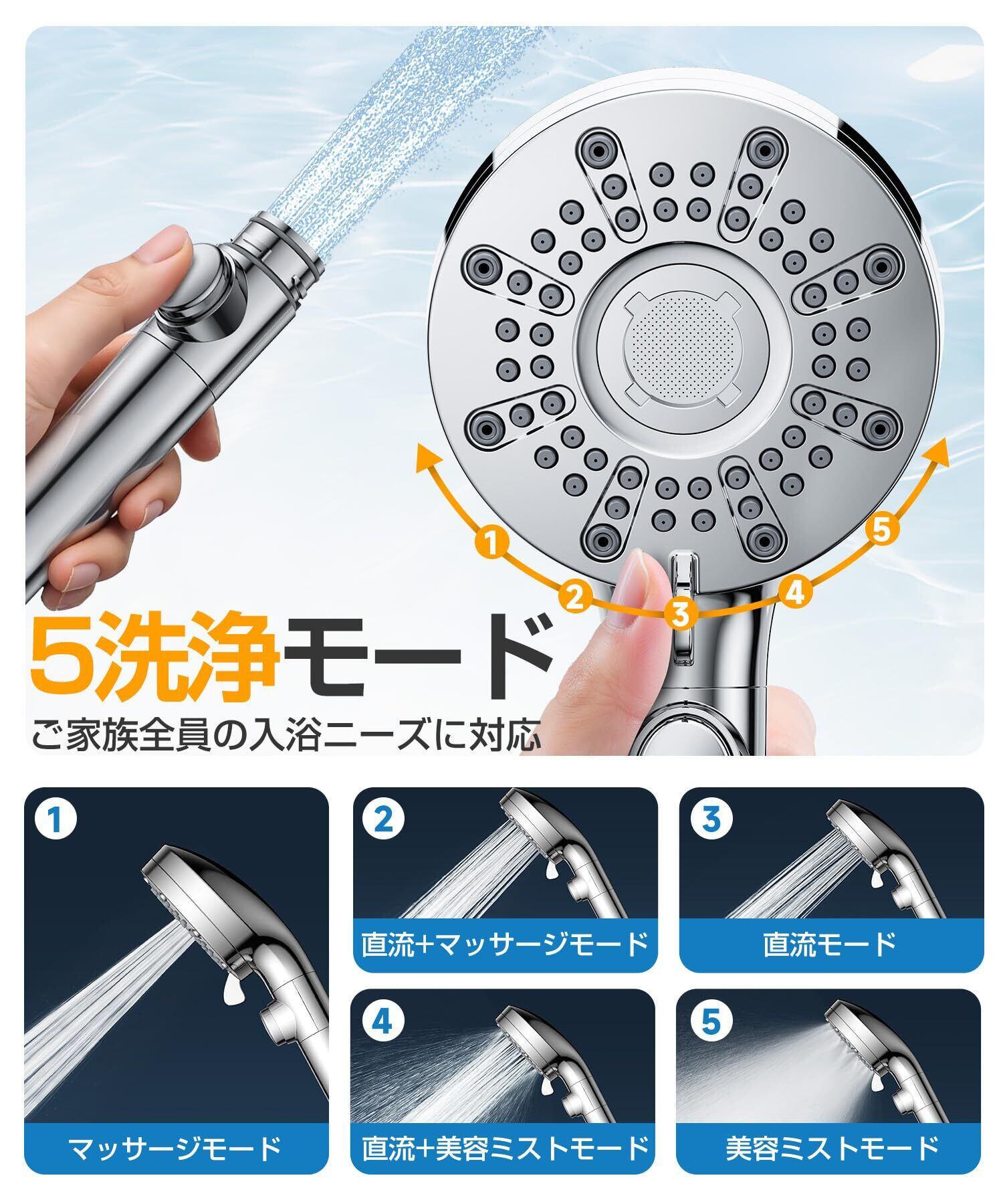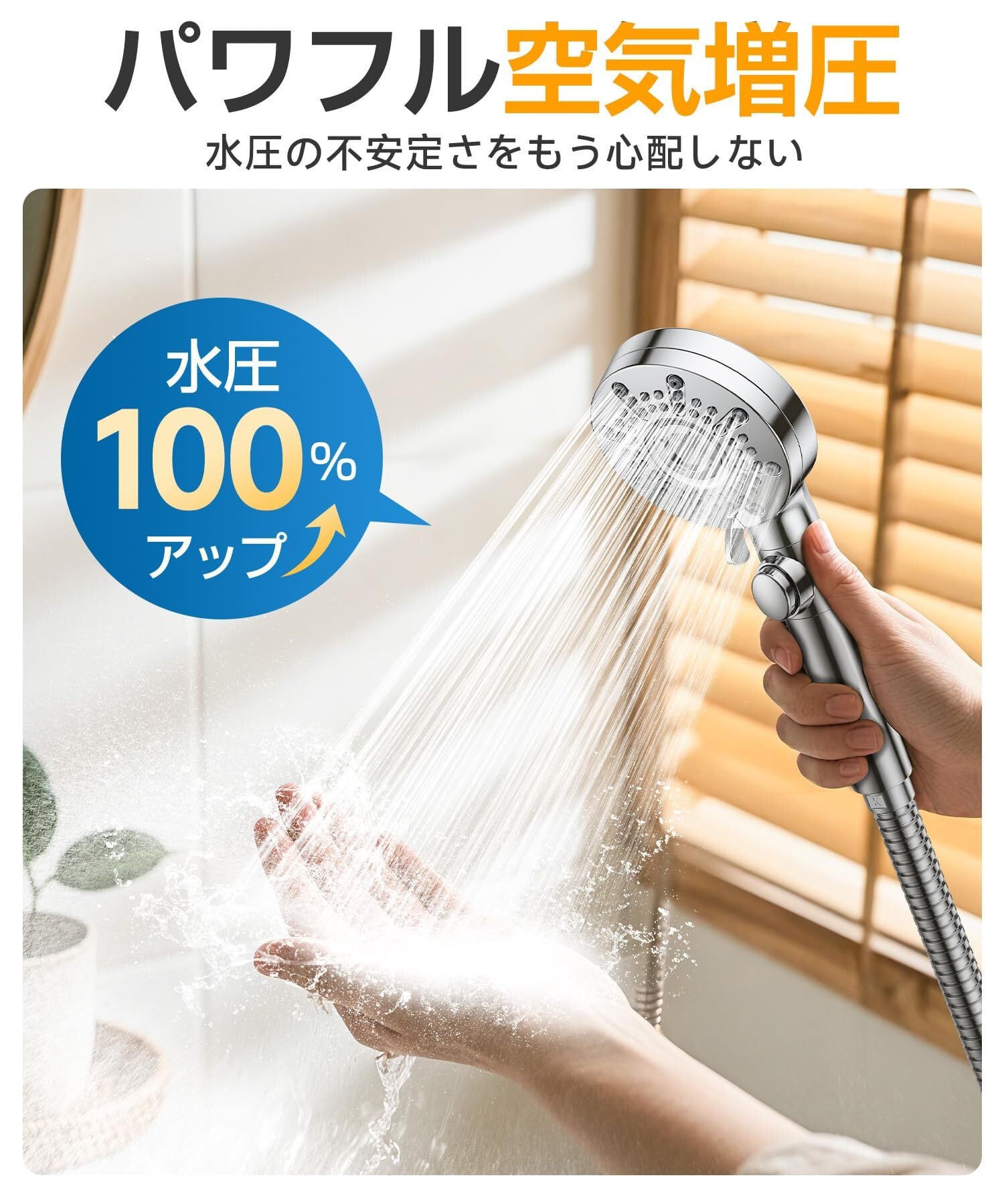 【驚異の節水90%&強力増圧、水不足も水道代もこれで安心】従来の シャワーヘッド 節水 の概念を覆す、画期的な性能です。驚異の90%節水 を実現しながら、まったくパワーが落ちないどころか、むしろ 「シャワーヘッド 高水圧」 を実現! 強大な水流が頭皮や体にまとわりつく泡を一気に洗い流し、時短シャワーも快適に。水不足が心配される季節も、罪悪感なくたっぷりとお湯を使える、という心の余裕が生まれます。環境保護への貢献という嬉しいおまけつきで、使うたびに 「選んで正解!」 と実感できる、スマートでエコな選択です。