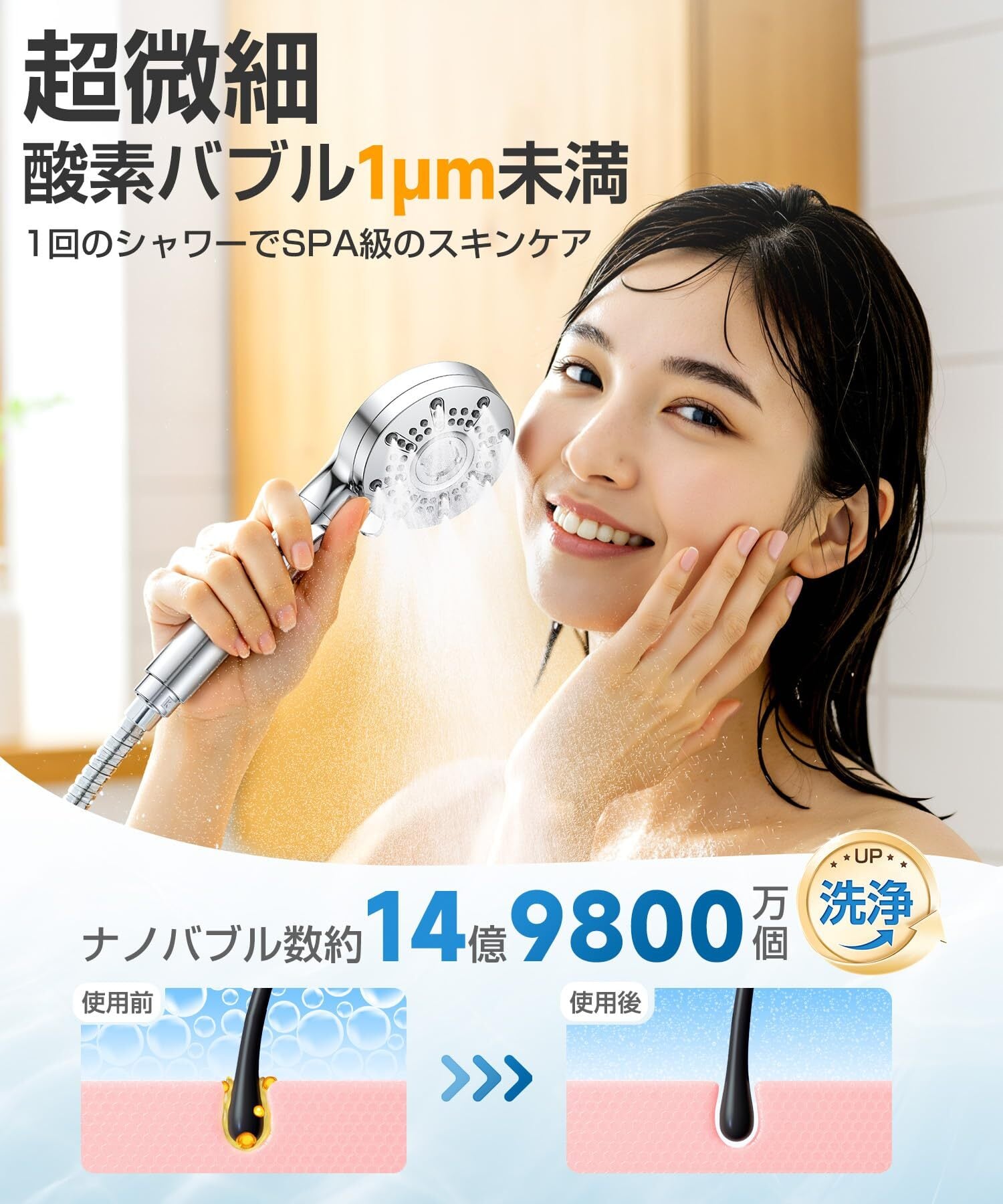 【自宅がSPAに!「超微細バブル」が肌をやさしく包み込み、まるで自宅が高級温泉に】シャワーヘッド マイクロナノバブル がもたらすのは、単なる「体を洗う」という行為を超えた、至極のリラクゼーション体験です。シャワーヘッドは14億9800万毛穴の奥まで入り込んだ微細泡が余分な皮脂や老廃物を吸着し、洗い上がりはしっとりとなめらか。さらに、浴室全体が湯けむりに包まれる高級温泉のような雰囲気は、視覚からもリラックスを誘い、忙しい一日の終わりを、自宅にいながらにして非日常の贅沢なバスタイムに変えてくれます。(注:ミスト使用時は「+2℃」がオススメ!)モード変更時の温度調整をお忘れなく、熱さ・冷たさに気をつけてください