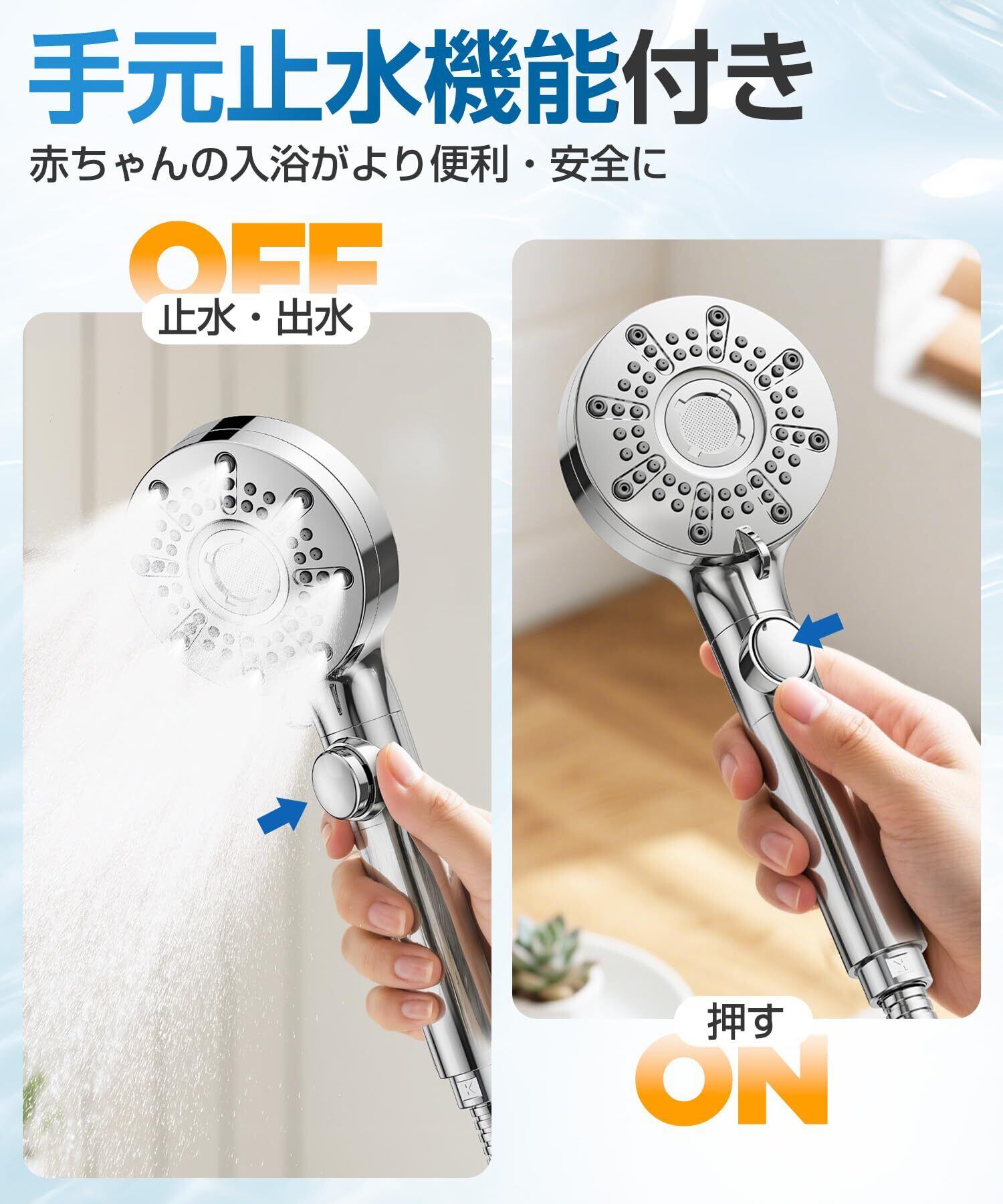 ⏱️【超便利手元止水&軽量設計/お子様・ご年配の方もラクラク操作】シャワーヘッド は、バスタイムの些細な「手間」と「危険」を徹底的に排除しました。シャンプーや体洗いの度に蛇口まで行く面倒から解放される 「ワンタッチ止水」 機能は、一度使うと手放せない便利さ。特に寒い冬は、温かいシャワーの真下から動かずに済むのは革命的な快適さです。さらに、驚くほど軽量化されたボディは、お子様の自立心を育み、ご年配の方の負担を大幅に軽減。「重くて腕が疲れる」 という悩みは完全解消されます。滑りにくい設計で落下のリスクも軽減され、全ての世代が、より安全に、より快楽的にバスタイムを楽しむための、理想的なパートナーとなるでしょう。