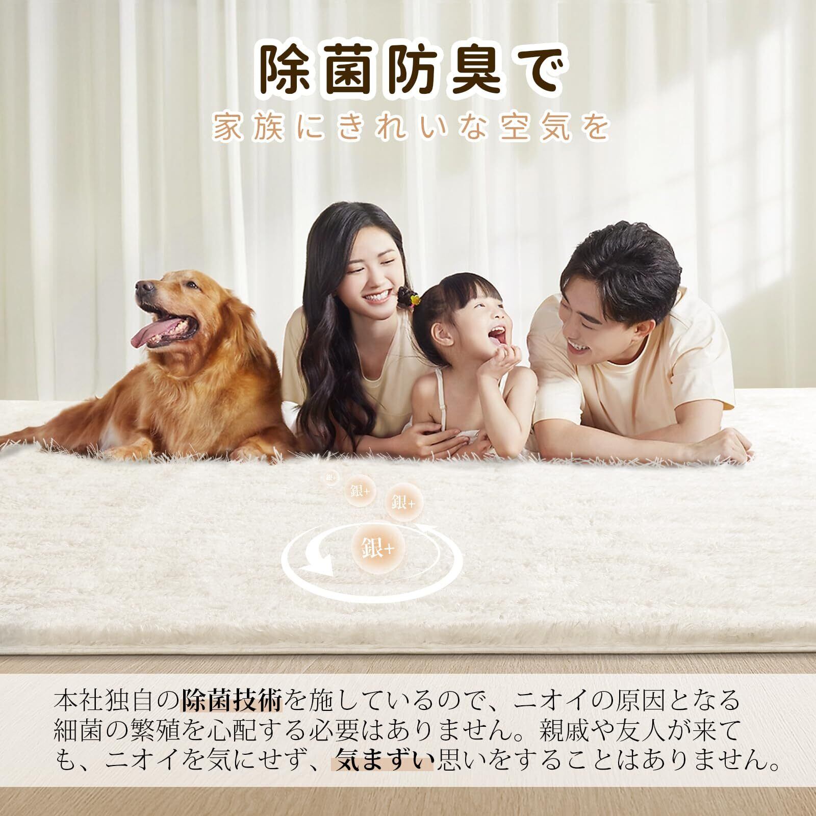 【抗菌防臭ラグ】本社が独自に開発した抗菌技術が施されており、細菌や真菌の成長を抑制し、ラグを長期間清潔で衛生的に保つことができます。ラグの清掃の手間を減らすだけでなく、ご家族や友人を常に清潔で安全な環境に保つことができます。