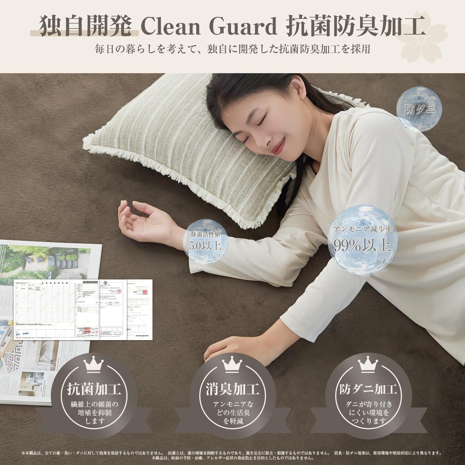 【抗菌・防臭、お手入れ簡便】ラグマットは短毛足のため掃除機で簡単に掃除できる、水洗いも可能です。さらに、抗菌・防臭加工が施されており、内外から清潔を保つことができます。
